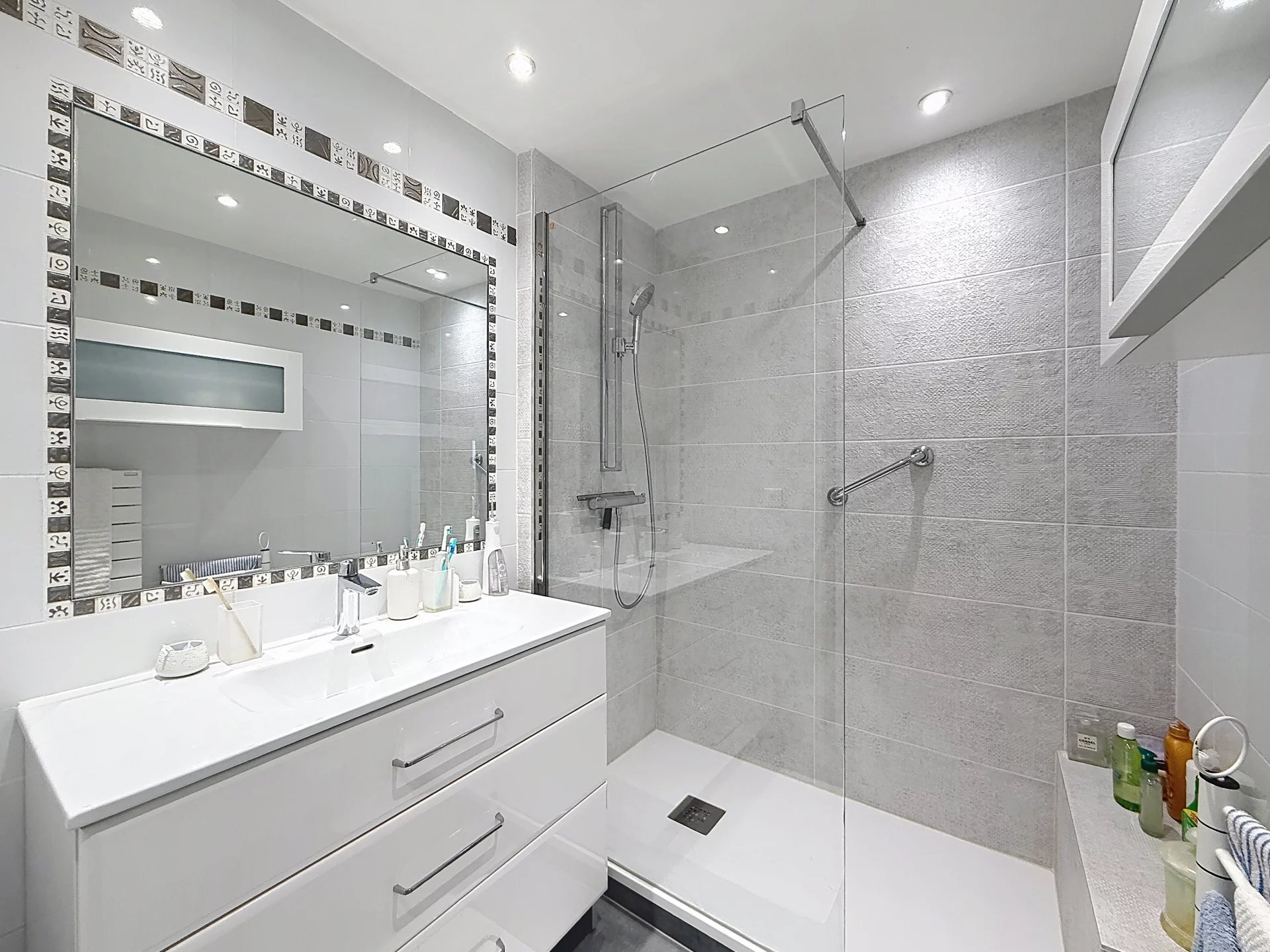 Cet appartement est composé d'un séjour de 30 m², d'une cuisine équipée, de trois chambres dont une avec son dressing, d'un espace bureau, de deux salles de douches, de deux wc.