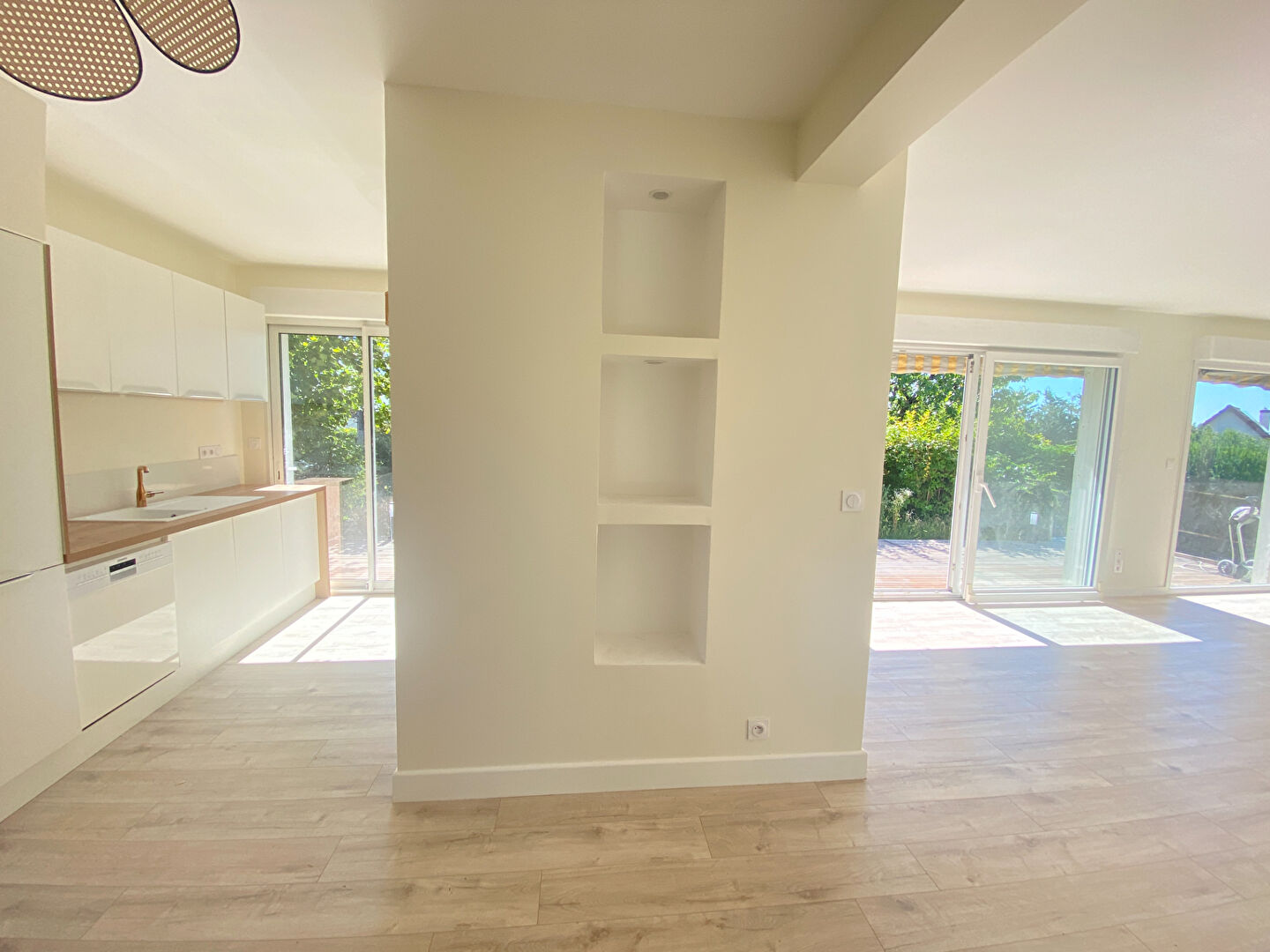 Rénovée et construite sur sous-sol complet avec garage double et atelier-buanderie, vous découvrirez une belle maison familiale avec au rez-de-chaussée une pièce de vie lumineuse avec sa cuisine contemporaine et son accès direct sur spacieuse terrasse en bois, ainsi qu'un espace nuit avec 2 chambres dont une avec salle d'eau, un bureau, une salle de bains avec Wc et des WC indépendants.