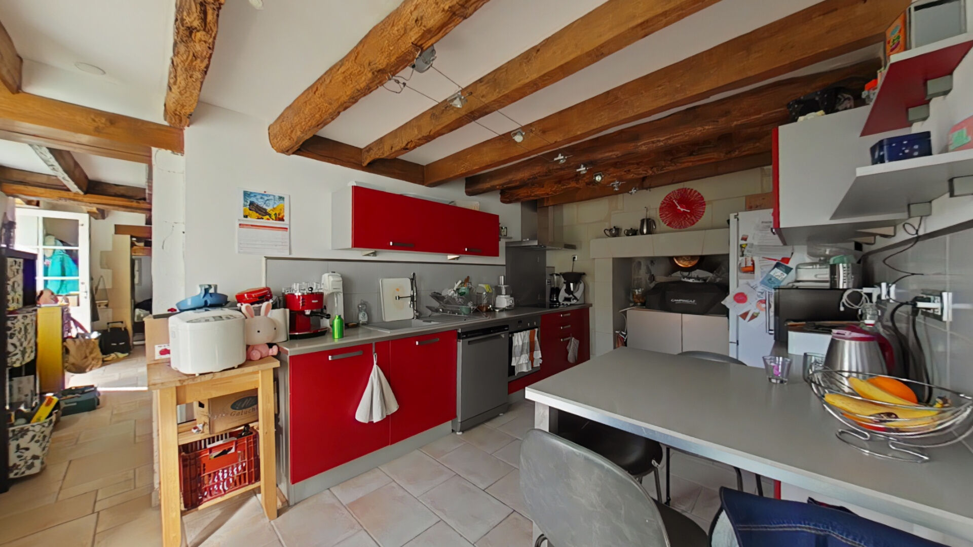 La maison se compose au rez-de-chaussée : d'une cuisine aménagée équipée et avec un four à pain, une salle d'eau avec baignoire, un salon avec cheminée et une spacieuse salle à manger.