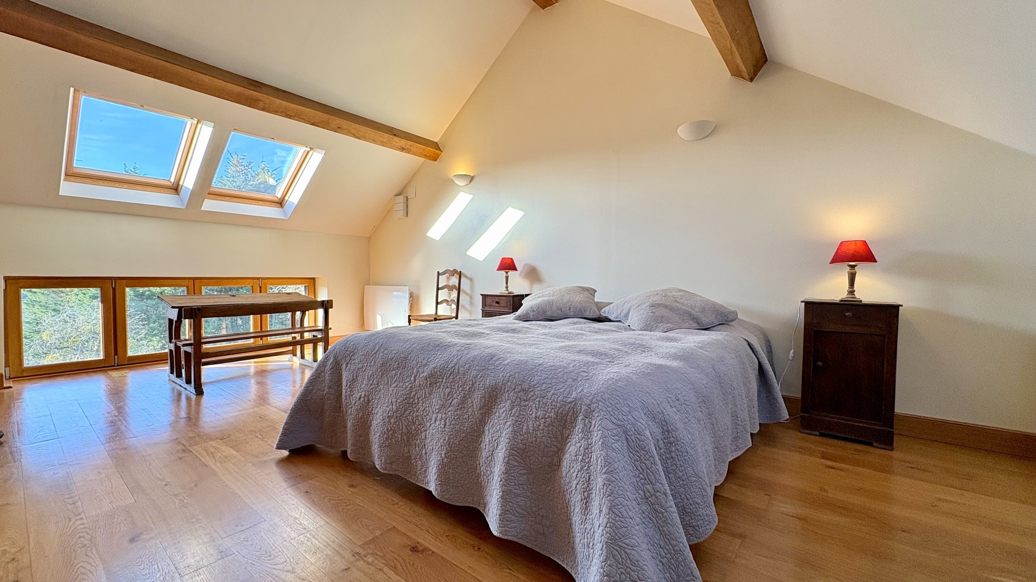 La maison a fait l'objet d'une restauration progressive sur environ quinze années : réfection et isolation des toitures, installation de menuiseries triple vitrage, amélioration des performances thermiques et modernisation du chauffage avec pilotage à distance. La rénovation s'est accompagnée d'un travail soigné sur les matériaux : chêne massif pour les parquets, escaliers et éléments de menuiserie intérieure. Ces prestations offrent aujourd'hui un niveau de confort élevé tout en conservant le caractère de la maison. La fibre optique permet également le télétravail.