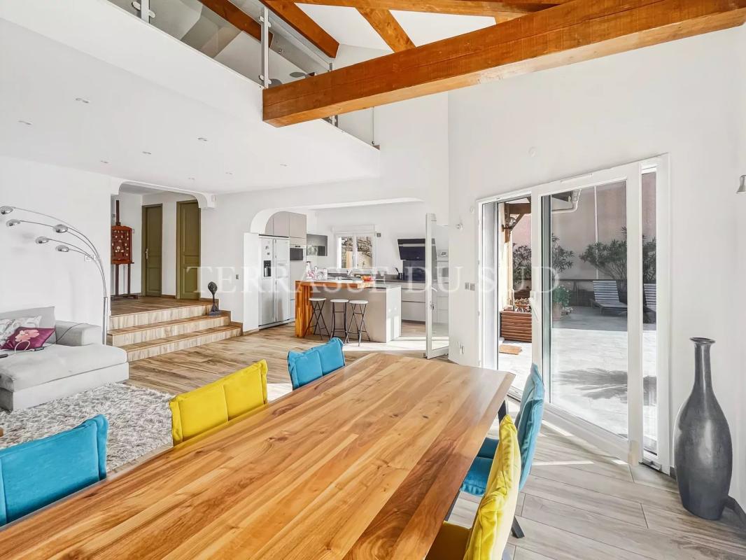 Autres prestations: Fenêtres en double vitrage, visiophone, volets électriques, parquet massif, garde-corps en verre, pompe à chaleur récente avec chauffage au sol, climatisation, internet par fibre optique.