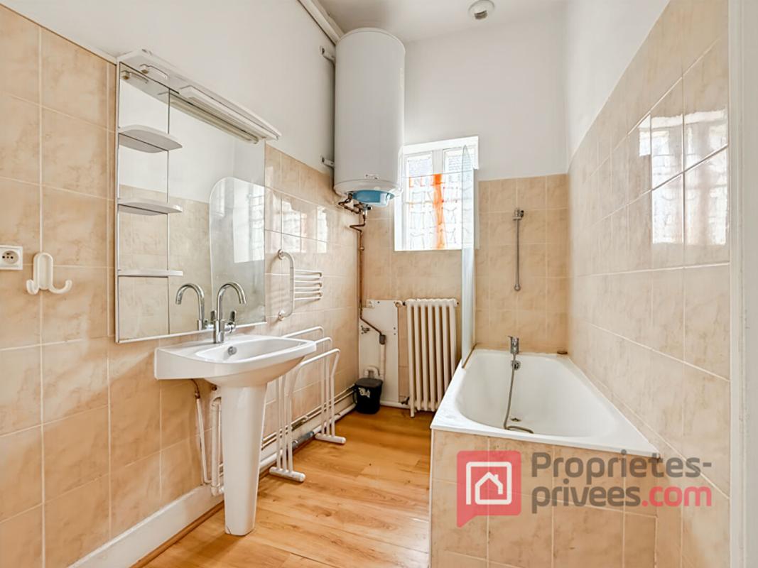 A l'étage, un bel appartement de 100 m² offre tout le charme de l'ancien avec son parquet et ses cheminées. Il se compose de deux chambres, d'un salon, d'une salle à manger, d'une cuisine indépendante et d'une salle de bains.