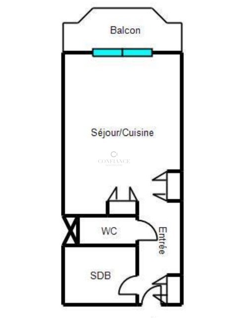 L'appartement se compose d'une entrée, d'une salle de bains, de WC invités, d'un salon avec cuisine américaine s'ouvrant sur la terrasse plein Sud et d'une chambre cabine, offrant ainsi un espace optimisé et confortable.