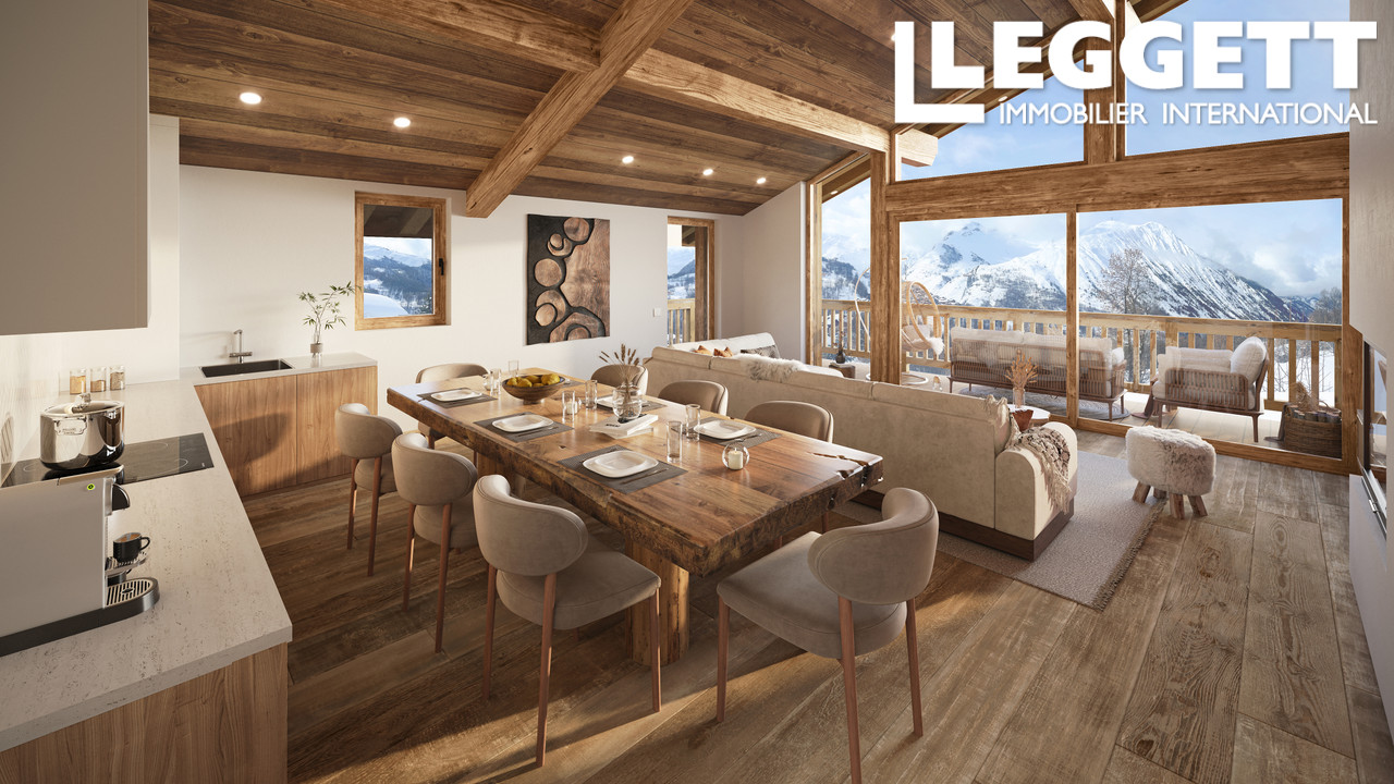 A43274EH73 - Appartements B5 et B6 : Ce luxueux penthouse de 5 chambres est situé dans le village Savoyard de Saint Martin de Belleville, au sein d'un programme neuf exclusif réalisé par des promoteurs locaux réputés. Cet appartement comprend cinq chambres doubles chacune avec salle de bains privative, ainsi qu'un vaste espace de vie et salle à manger ouvert avec une cheminée centrale et un coin bureau, ainsi qu'un sauna et un hammam.