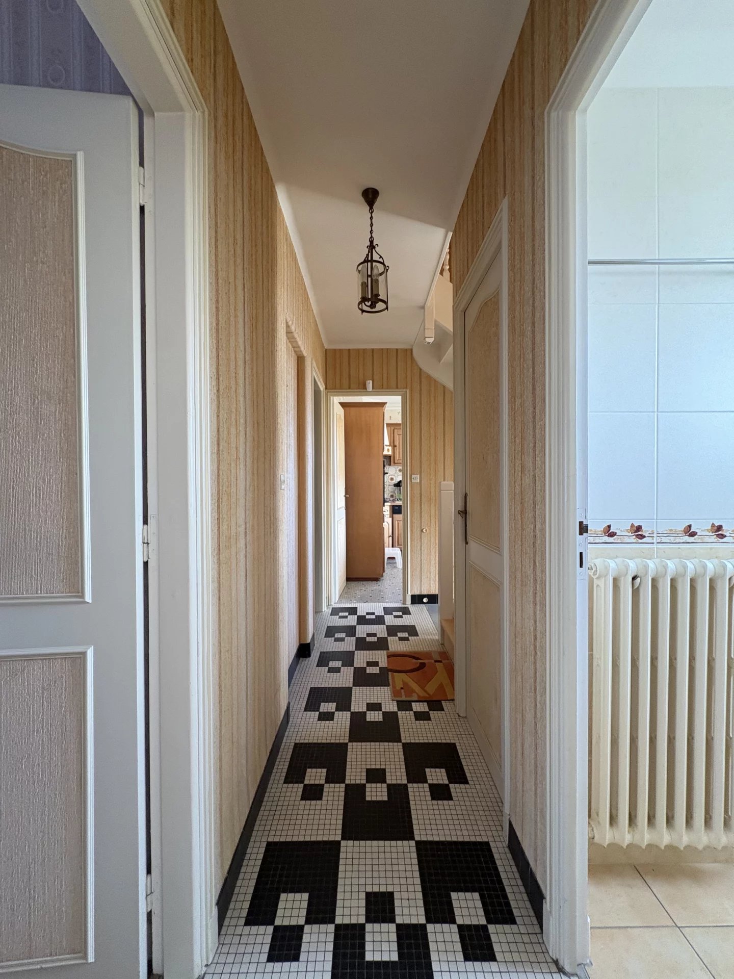 ST BRIEUC, proche collège Jean Macé, école et ligne de bus, maison 6 P., à moderniser, comprenant : entrée, séjour salon avec cheminée, cuisine aménagée, 5 chambres, 2 salles d'eau, W.C., buanderie, garage et jardin