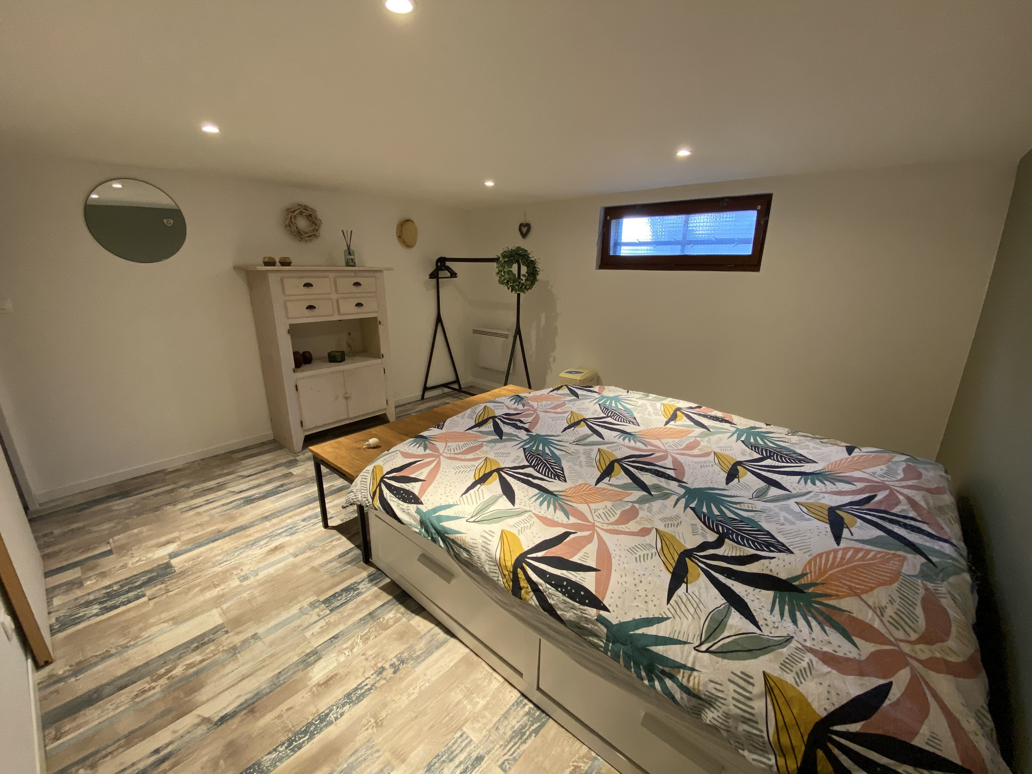 Au niveau semi-enterré, vous trouverez un bureau, une grande pièce de rangement, un petit local technique (vide ventilé et puits), ainsi qu'un vaste espace de jeux prolongé par un coin rangement et une chaufferie.