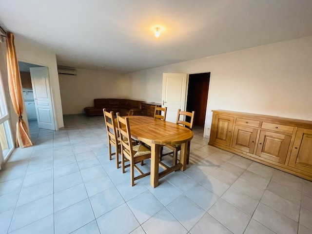 Maison T3 comprenant: Un grand séjour de 35.80 m2 ouvrant sur une terrasse-patio de 17.15 m2 (avec store banne électrique), une cuisine de 9.95 m2 aménagée et équipée, deux chambres dont une avec placard de 11,95 m2 et 11.85 m2, une salle d'eau de 5.05 m2 avec douche à l'italienne et double vasque et un WC avec lave mains de 3.75 m2 + coin buanderie.
