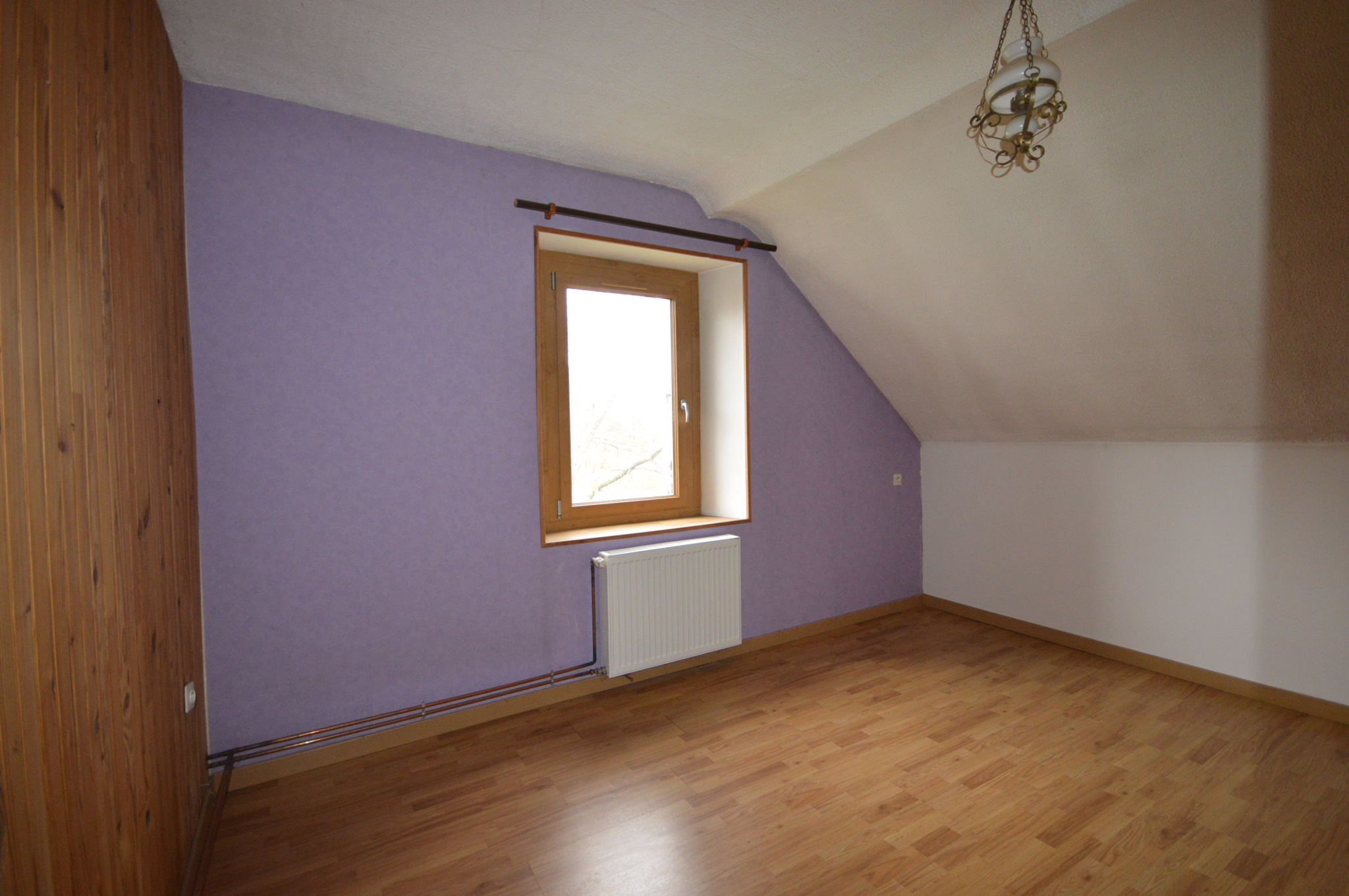 Entrée, cuisine équipée, grand salon-salon très lumineux avec insert à bois, vaste SDB, wc.
