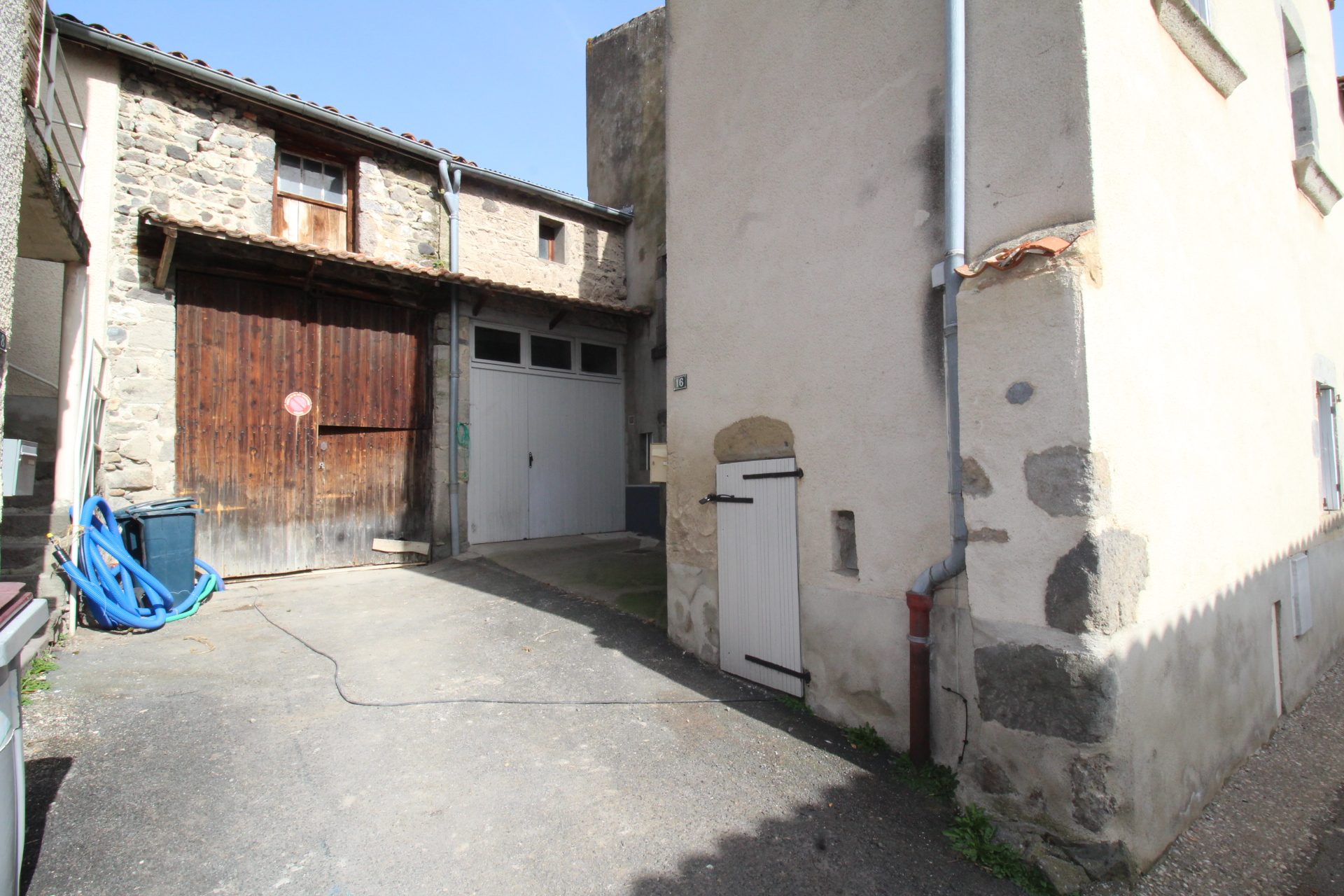 Présence d'une grange attenante et d'une cour en indivision.