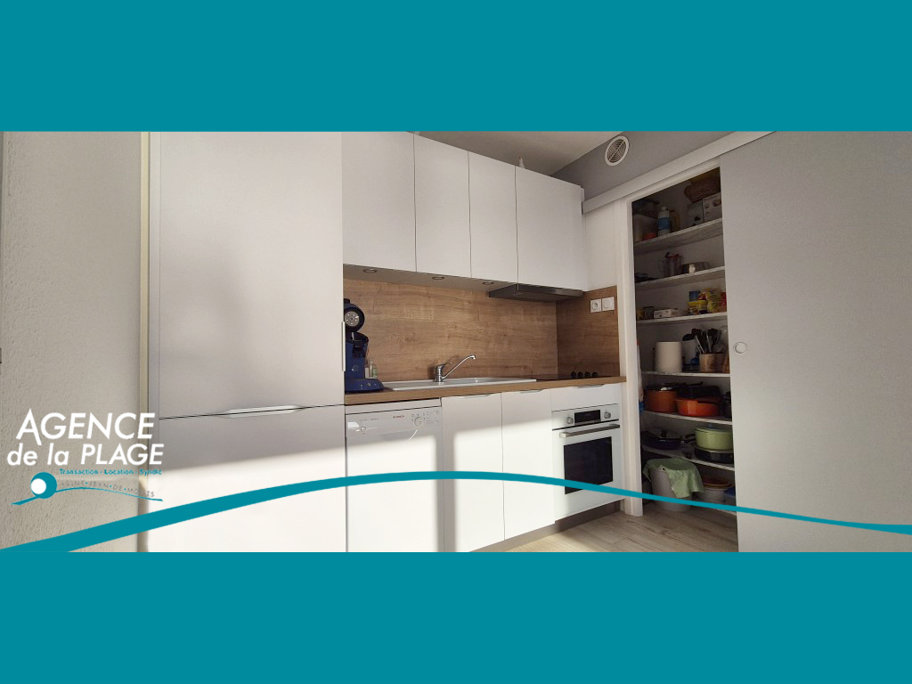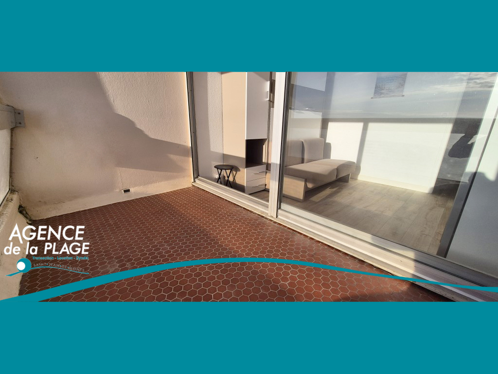 Entrée, pièce de vie avec cuisine ouverte aménagée et équipée donnant sur balcon face à l'océan, débarras, chambre face mer avec balcon vue mer également, salle de bains, wc.