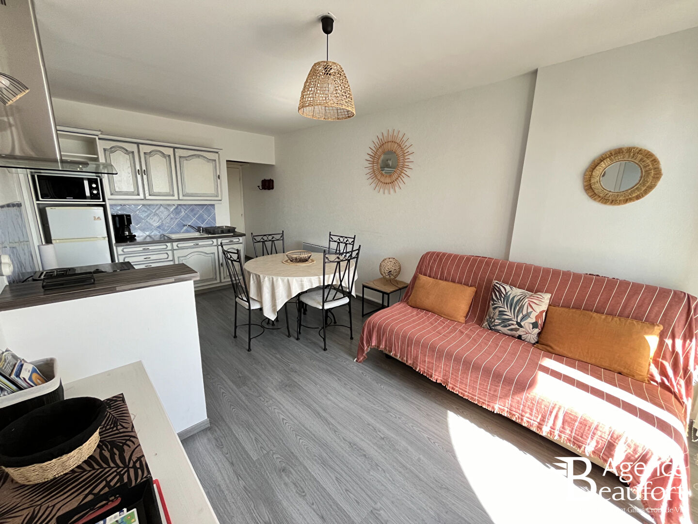 Accès direct à la grande plage pour cet appartement en excellent état comprenant une entrée, une pièce de vie avec cuisine aménagée, une chambre, salle d'eau avec WC. Profitez de la loggia avec une belle vue Mer. Cave.