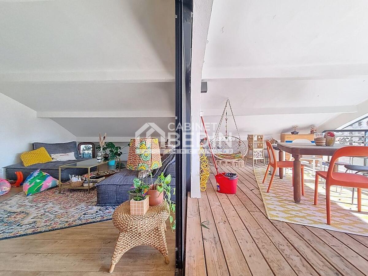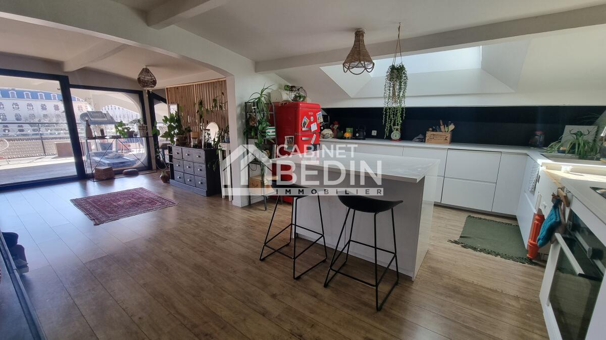 TOULOUSE - GUILHEMERY. Au c?ur du quartier Guilhemery, le Cabinet Bedin Immobilier vous présente cet appartement T3 situé au deuxième et dernier étage d'un bâtiment historique. Ancien cinéma des années 1920, réhabilité en 2017 en logements de standing, il offre environ 100 m² comprenant une entrée, une grande pièce de vie avec cuisine ouverte équipée, ouvrant sur une terrasse exposée sud-ouest. L'appartement dispose de 2 chambres, d'une salle d'eau avec WC et d'un coin buanderie. Un garage box fermé complète ce bien. Ce lieu chargé d'histoire conserve son architecture originale avec charpente métallique et sa halle en béton armé. Proche du Caousou, des commerces et de la Linéo 1. . Les informations sur les risques auxquels ce bien est exposé sont disponibles sur le site Géorisques : www. georisques. gouv. fr. Montant estimé des dépenses annuelles d?énergie pour un usage standard : entre 911 et 1233 Euros/an (année de référence 2024) Bien en copropriété de 10 lots dont 5 lots principaux , Charges annuelles 900. 00 Euros , Surface Carrez 58. 9m²