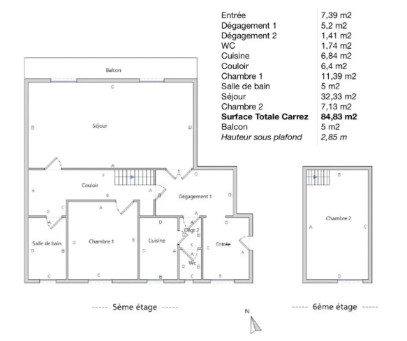 Il se compose d’un double séjour ouvrant sur un balcon filant, deux chambres, dont une en duplex, une entrée/bureau, cuisine, SDB, WC, et cave.