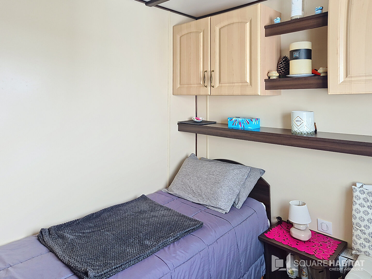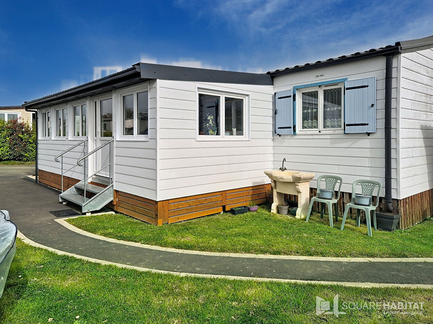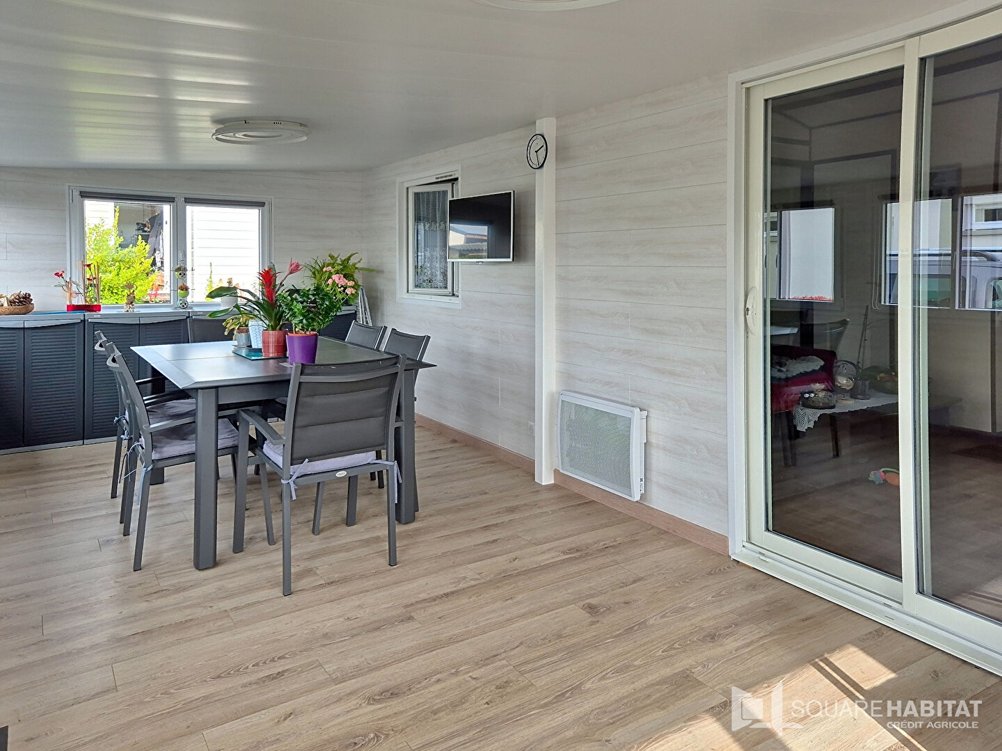 Il se compose d'une pièce de vie avec une cuisine aménagée et équipée, une buanderie, deux chambres, une salle d'eau, une salle à manger et un wc.