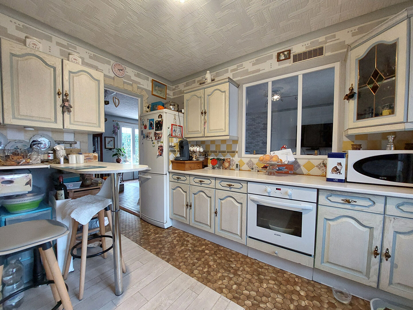 Elle comprenant : Une entrée avec placards, une séjour avec cheminée insert, une cuisine aménagée et équipée, une véranda, un couloir desservant trois chambres, une salle d'eau ainsi qu'une WC.