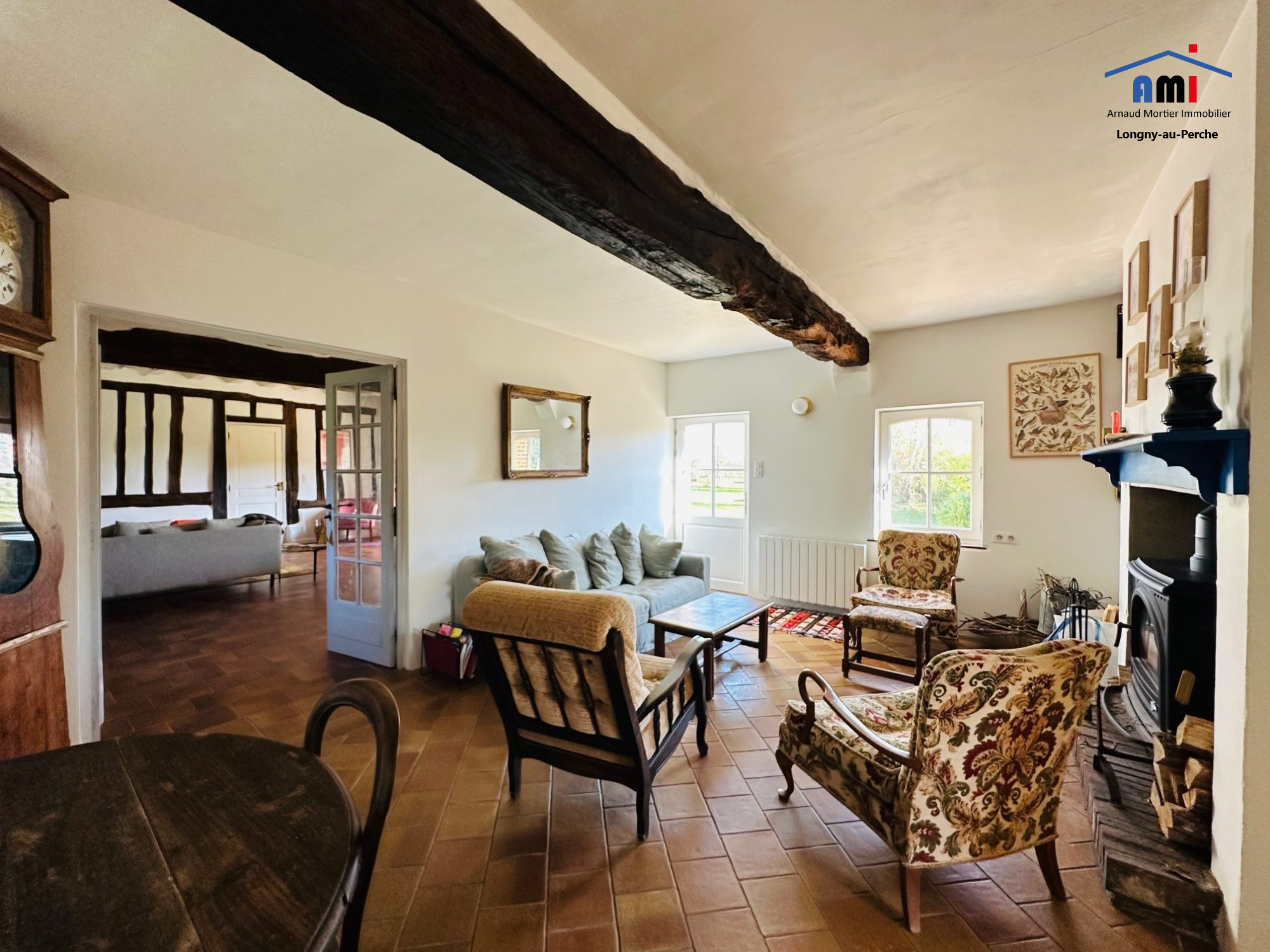 En EXCLUSIVITÉ, à quelques minutes d'un village avec premiers commerces et 15min d'une gare, en hameau au calme, l'agence AMI vous propose une maison ancienne rénovée de près de 140m² habitables sur plus de 4110m² de terrain avec vue dégagée. La maison offre au rez de chaussée : une entrée desservant d'un côté un cellier, un WC avec placards et une salle de bains (possibilité de créer une chambre). De l'autre, un séjour avec colombage de plus de 34m², un salon avec poêle à bois de 21m² et une cuisine aménagée et équipée de 14m². A l'étage, rénové récemment (isolation, velux, salle d'eau/WC, aménagement couloir et chambres), une chambre palière, un couloir avec rangements sous pente sur toute la longueur, une chambre d'enfant ou bureau (9.6m² au sol), une salle d'eau avec WC (4.1m²) et une grande chambre de 14m² (20.3m² au sol). Fenêtres en double vitrage bois, chauffage par convecteurs électriques et poêle à bois, couverture en tuiles de pays en bon état, assainissement individuel. En dépendance, un garage construit en bois et un bûcher. Terrain arboré de plus de 4100m² avec vue dégagée.