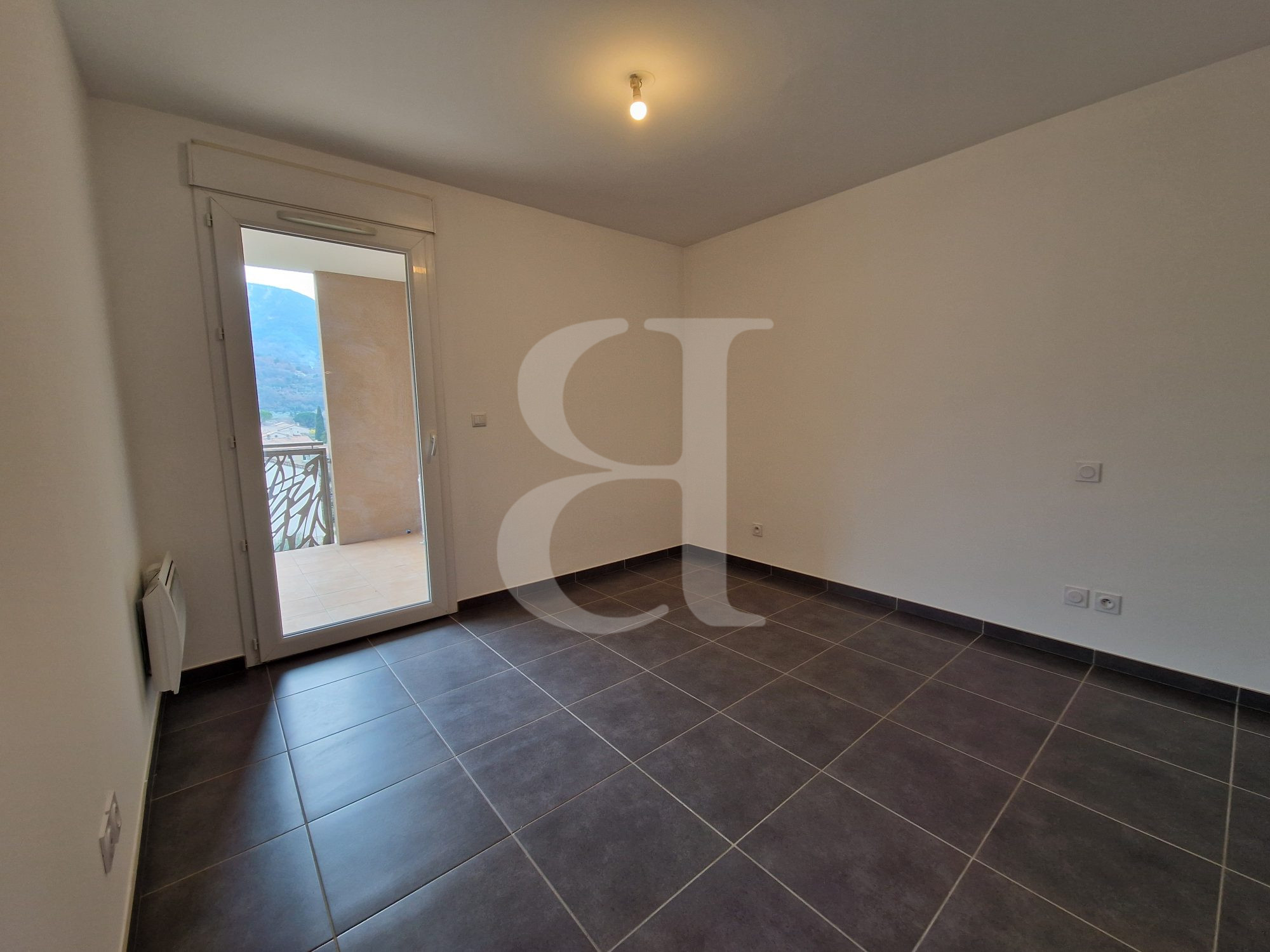 L'appartement comprend une cuisine équipée, une chambre donnant également sur la terrasse, salle d'eau, wc. Un garage vient compléter ce bien.
