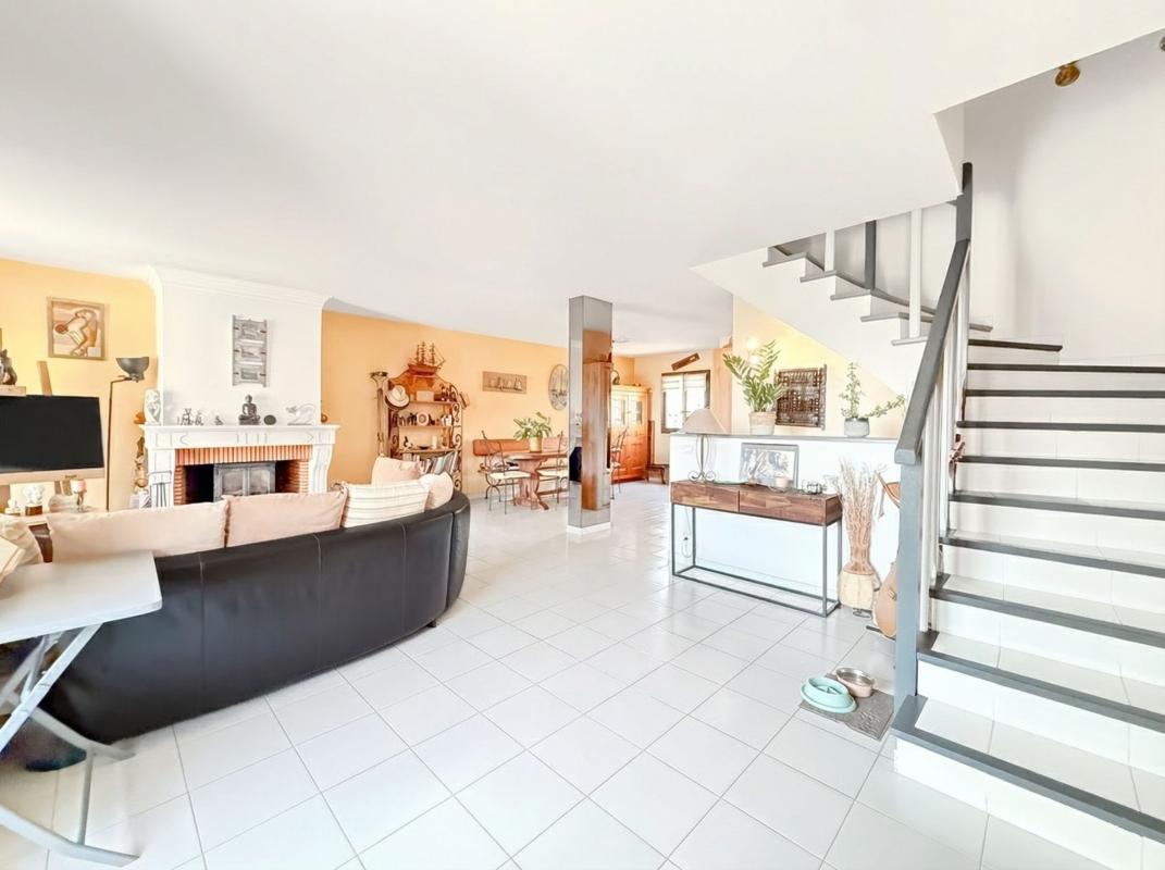 Idéalement située à proximité des commerces et des écoles à pied, cette agréable maison jumelée d'angle offre un cadre de vie pratique et convivial. Le rez-de-chaussée s'articule autour d'une vaste pièce de vie d'environ 45 m² ouverte sur le jardin et sa piscine.