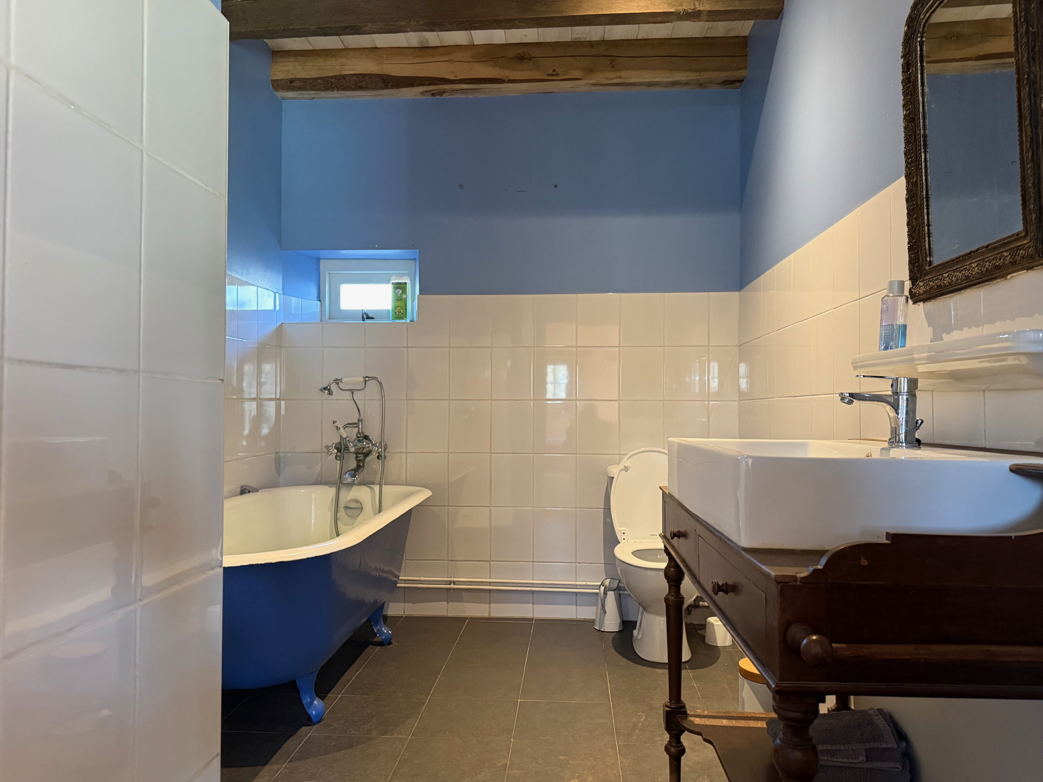 Auv 1215 : Plein-pied habitable, étage en plus, dépendances, beau jardin. Cette superbe maison en pierres taillées possède d'un rez-de-chaussée de plein-pied avec un étage avec 3 chambres et salle d'eau supplémentaires. Dépendances, terrain. La maison a été entièrement rénovée avec beaucoup d'attention portée aux détails authentiques. Poutres apparentes, murs en pierres naturelles jontés, superbe plancher en bois dans le séjour, etc. La plupart des fenêtres sont en double vitrage, mais pas toutes. Toute la maison est équipée d'un chauffage central au fioul. Au milieu de la maison se trouve une superbe pièce de vie de 51m2. C'est le coeur de la maison, avec un beau plancher en larges lames de chêne, un poêle à bois et des portes doubles donnant sur le jardin. Entre les poutres, la hauteur sous plafond est d'environ 2m50. Magnifique bibliothèque. La salle à manger fait 27m2 et dispose également d'un poêle à bois, d'un parquet en chêne et d'un plafond habillé de bois. La cuisine équipée mesure 23m2 et possède une belle ancienne cheminée ainsi qu'un poêle à bois, un sol carrelé et un plafond en bois peint en blanc. Derrière la cuisine se trouve un espace de rangement avec machine à laver et réfrigérateur, ainsi qu'un toilette supplémentaire. C'est également ici que se trouve l'accès à la cave de 28m2 avec la cuve à fioul et la chaudière du chauffage central. Au rez-de-chaussée, il y a une première chambre de 13,5m2 avec d'agréables portes doubles donnant sur le jardin. Plafond en bois, beaux planchers et salle de bains en suite. La magnifique salle de bains de 8m2 comprend une douche à l'italienne, une baignoire en fonte sur pieds, un toilette et un beau meuble lavabo. Il y a également une pièce de 5m2, idéale pour installer machine à laver et sèche-linge. Au premier étage se trouvent encore trois chambres agréables de 19,5, 12 et 9,5m2. Il y a aussi une jolie salle d'eau (5m2) avec douche, toilette et lavabo. Il y a également un palier spacieux à l'étage de 12m2, escalier compris. Cet étage est lui aussi chauffé par le chauffage central. Il y a encore un double grenier (surfaces au sol de 36 et 28m2) qui pourrait être aménagé. La toiture du grenier n'est pas isolée, mais le plancher entre le grenier et les chambres l'est. Le jardin est très joliment aménagé, avec une table pour manger et plusieurs coins salon agréables. On y trouve également de belles plantations. Le long de la façade, une pergola a été installée sous laquelle on peut s'asseoir. Il y a ensuite plusieurs dépendances attenantes. Tout d'abord un grand auvent d'environ 85m2. Dans la continuité se trouve un espace de grange sous toit en pente de 46m2 avec une toiture en moins bon état. À côté se trouve encore un petit auvent de 13m2. Il y a aussi un abri en bois récemment construit de 32m2. Il serait pratique d'y créer un passage afin de pouvoir entrer en voiture depuis le petit chemin situé à l'arrière. Sur le côté de la maison se trouve un magnifique mur en pierres naturelles avec un portillon piéton. Il y a également un grand espace de grange, accessible par la grande porte située à l'arrière du bâtiment, le long du petit chemin. Cet espace de grange ou d'atelier mesure environ 88,5m2. Le point le plus haut du toit atteint 6,2 mètres. Très belle maison agréable.