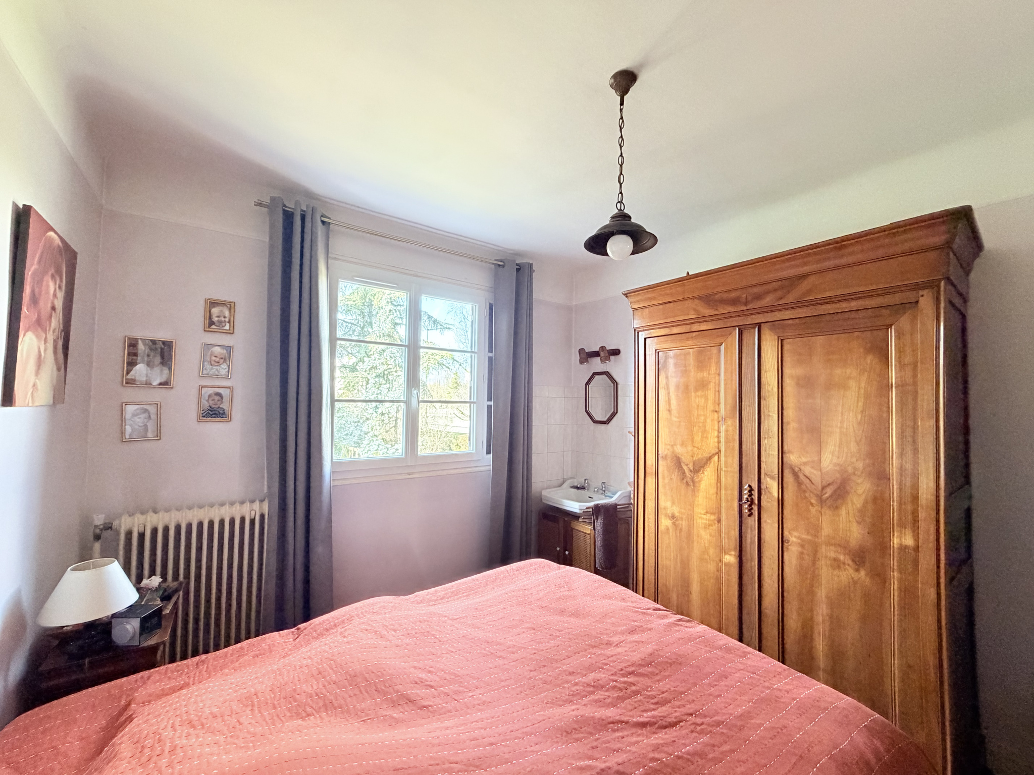 A l'étage : palier avec accès à une grande terrasse solarium (18 m2) surplombant le jardin, deux chambres, une autre chambre avec un grand balcon, une salle de bains avec toilettes.