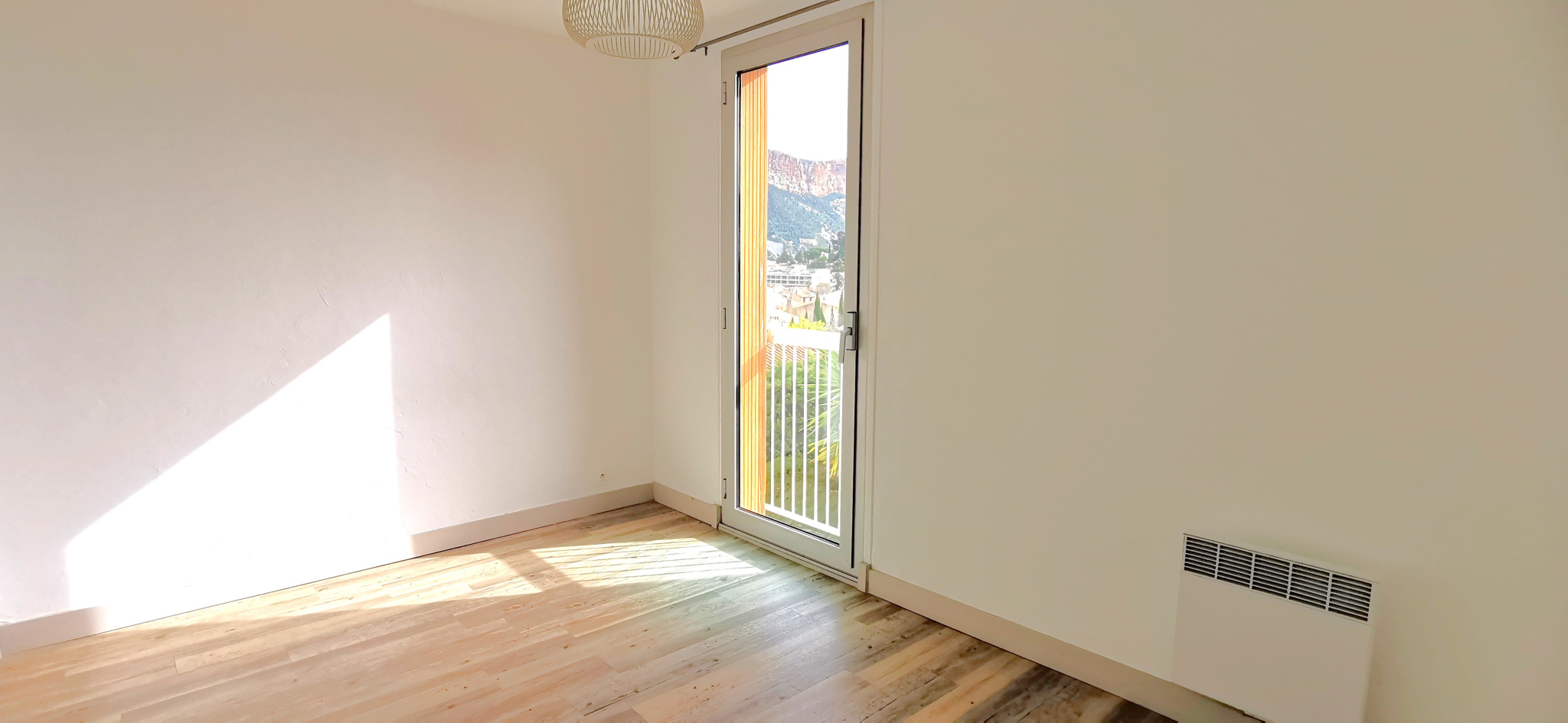 Le séjour, spacieux et lumineux, s'ouvre sur un balcon exposé plein sud qui offre une belle vue sur le Cap Canaille et un aperçu sur la mer. Cela constitue un véritable atout, parfait pour profiter du climat méditerranéen, se détendre ou recevoir des invités dans un cadre convivial.