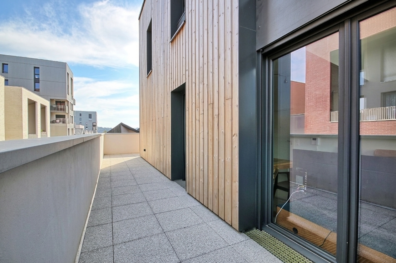 Exclusif, idéalement situé dans le quartier de Bacalan (Bassins à flots), duplex F4 de 86m2 (84m2 carrez) en excellent état avec terrasse de 56m2 proche du tramway B (arrêt Achard). Situé au dernier étage, profitez d'un grand séjour lumineux avec triple exposition et plafond cathédrale, d'une cuisine ouverte aménagée avec accès terrasse et d'une salle d'eau/buanderie avec WC. A l'étage, retrouvez 3 grandes chambres (dont une avec salle d'eau) et une salle de bain avec WC. Grande terrasse de 56m2 ouverte sur l'ensemble du rdc de l'appartement, offrant une luminosité exceptionnelle. Situé au 5e et dernier étage d'une résidence construite en 2019 avec ascenseur, local vélo et place de stationnement privative dans un parking fermé et sécurisé. Idéalement localisé à proximité de toutes commodités. Tramway et bus, commerces, écoles, parcs et jardins, Halles de Bacalan... Honoraires à la charge acquéreur compris dans le prix de vente affiché