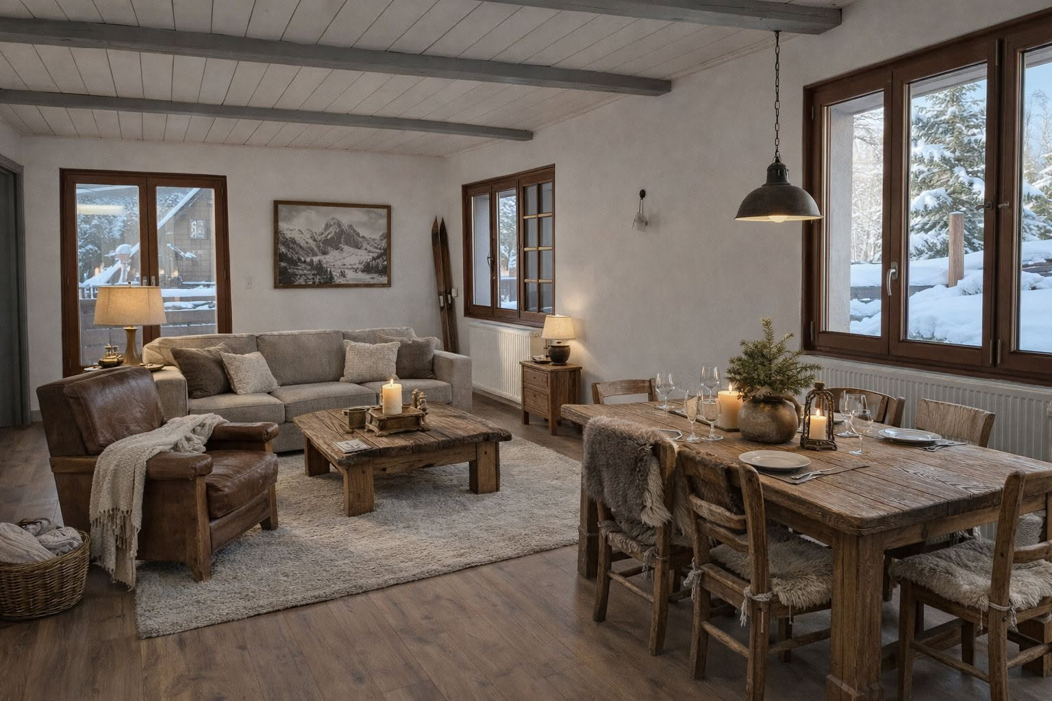 Ce triplex de 150 m2 jouit d'une situation idéale dans un cadre bucolique à proximité immédiate du coeur du village et de toutes les commodités à pied ainsi que du ski bus ; et en fonction de l'enneigement, possibilité de retour à ski jusqu'au chalet.