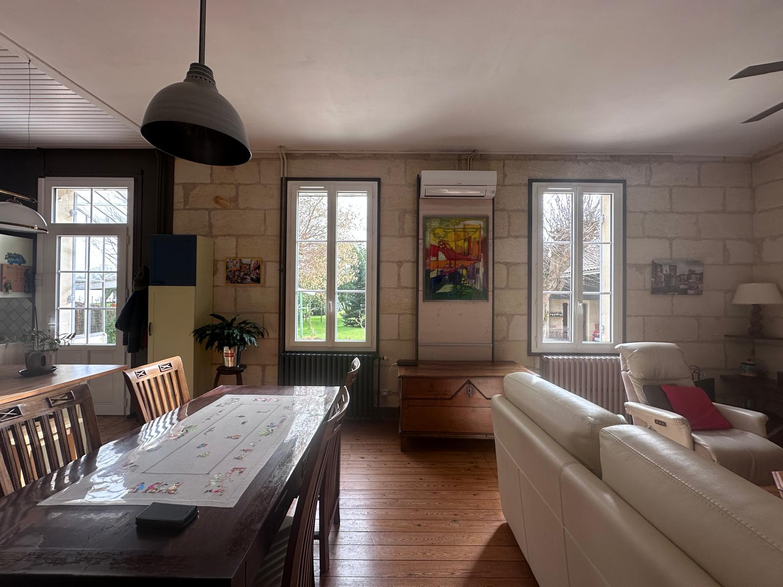 Aux portes de Saint-Émilion et Libourne, l'agence Herranz Immobilier vous invite à découvrir cette élégante demeure en pierre, idéalement située pour un mode de vie 'tout à pied' à deux pas des commerces et des écoles. Nichée dans un parc arboré de 3 300 m2, la propriété séduit par ses volumes où parquets d'époque et cheminées en marbre soulignent un cachet authentique. La pièce de vie de 43 m2 avec cuisine ouverte s'ouvre sur un extérieur privilégié, agrémenté d'une grande piscine et d'une jolie terrasse couverte avec barbecue. Cette maison se distingue par ses 150 m2 de dépendances, comprenant une grange, des garages fermés et un gîte indépendant de 35 m2 prêt à l'emploi. Alliant une rénovation technique (toiture 2021, menuiseries et chaudière 2023) à un emplacement stratégique proche de l'A89 et de Bordeaux, cette maison de caractère offre un équilibre parfait entre sérénité et vie de village.