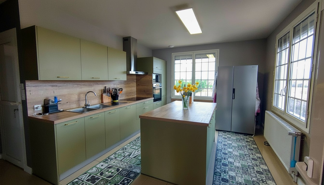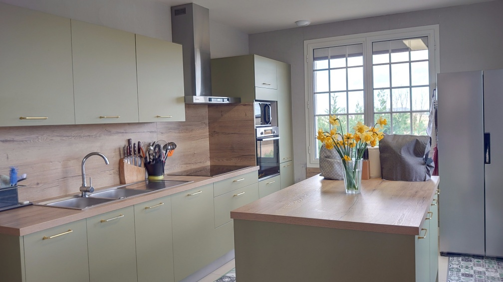 Cuisine neuve entièrement équipée : 19 m2 avec îlot central