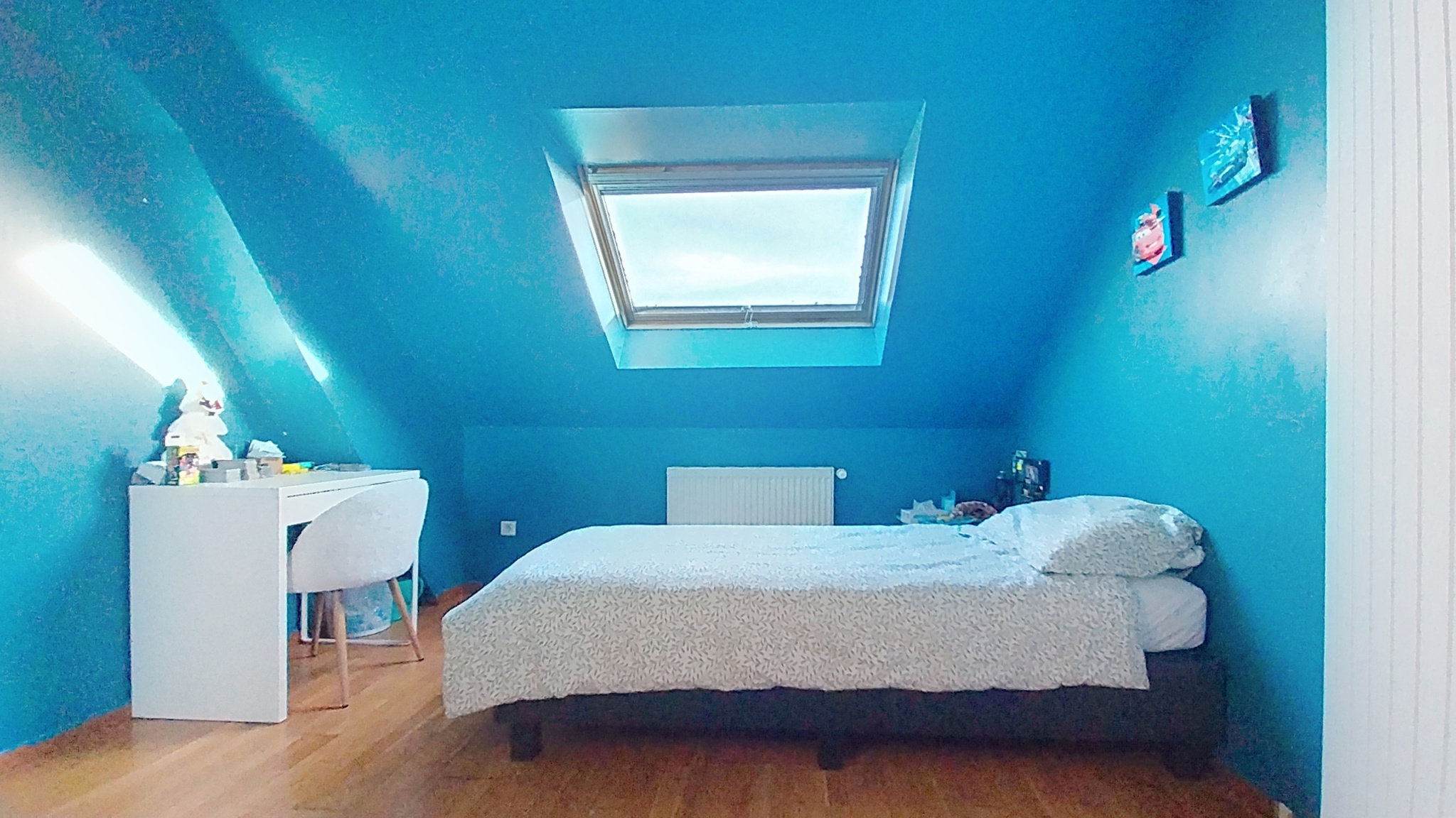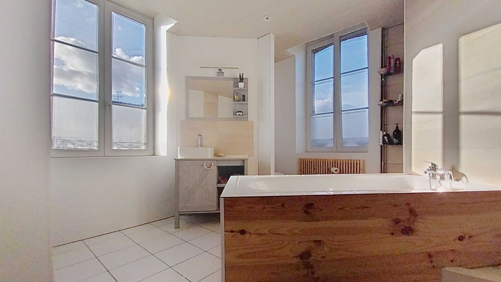 Vous accédez à l'étage par un bel escalier en bois, un large dégagement distribue 3 chambres très spacieuses, un dressing, une salle de bains avec baignoire, douche et WC.
