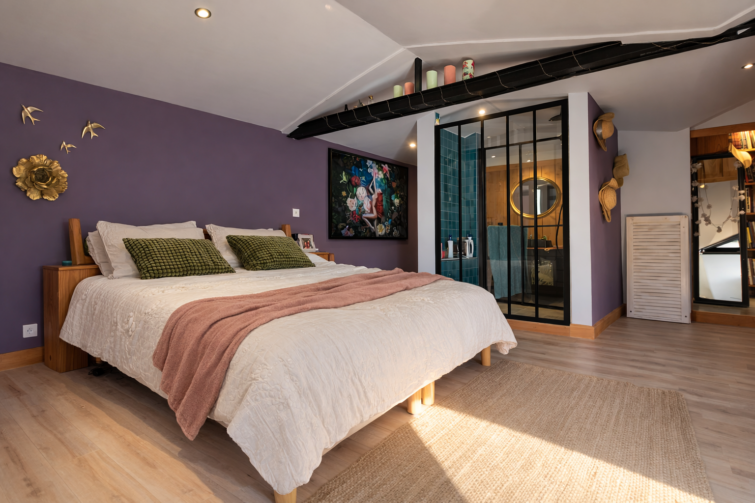 La maison dispose de trois chambres dont une superbe suite parentale d'environ 30 m2 avec sa salle d'eau privative, offrant un véritable espace nuit indépendant. Une salle de bains avec baignoire et douche complète l'ensemble ainsi que deux WC. Un cellier / buanderie vient ajouter un espace fonctionnel au quotidien.