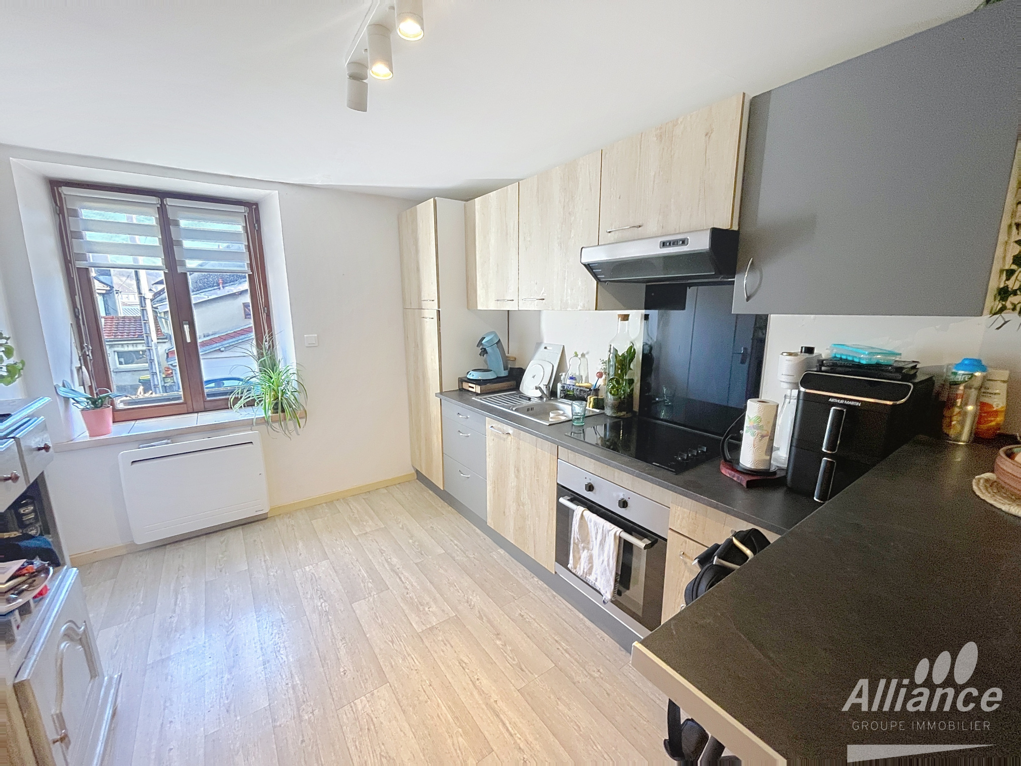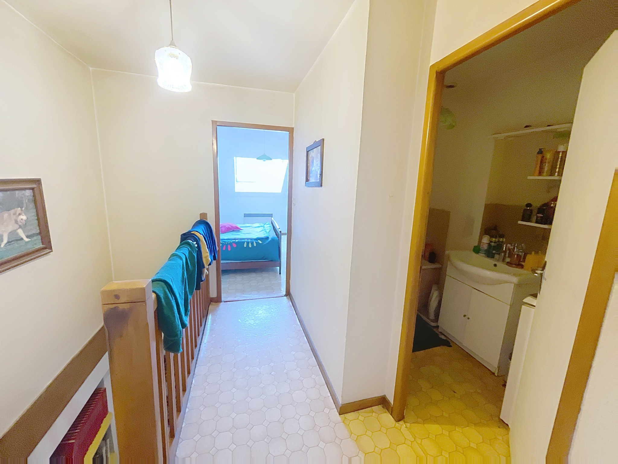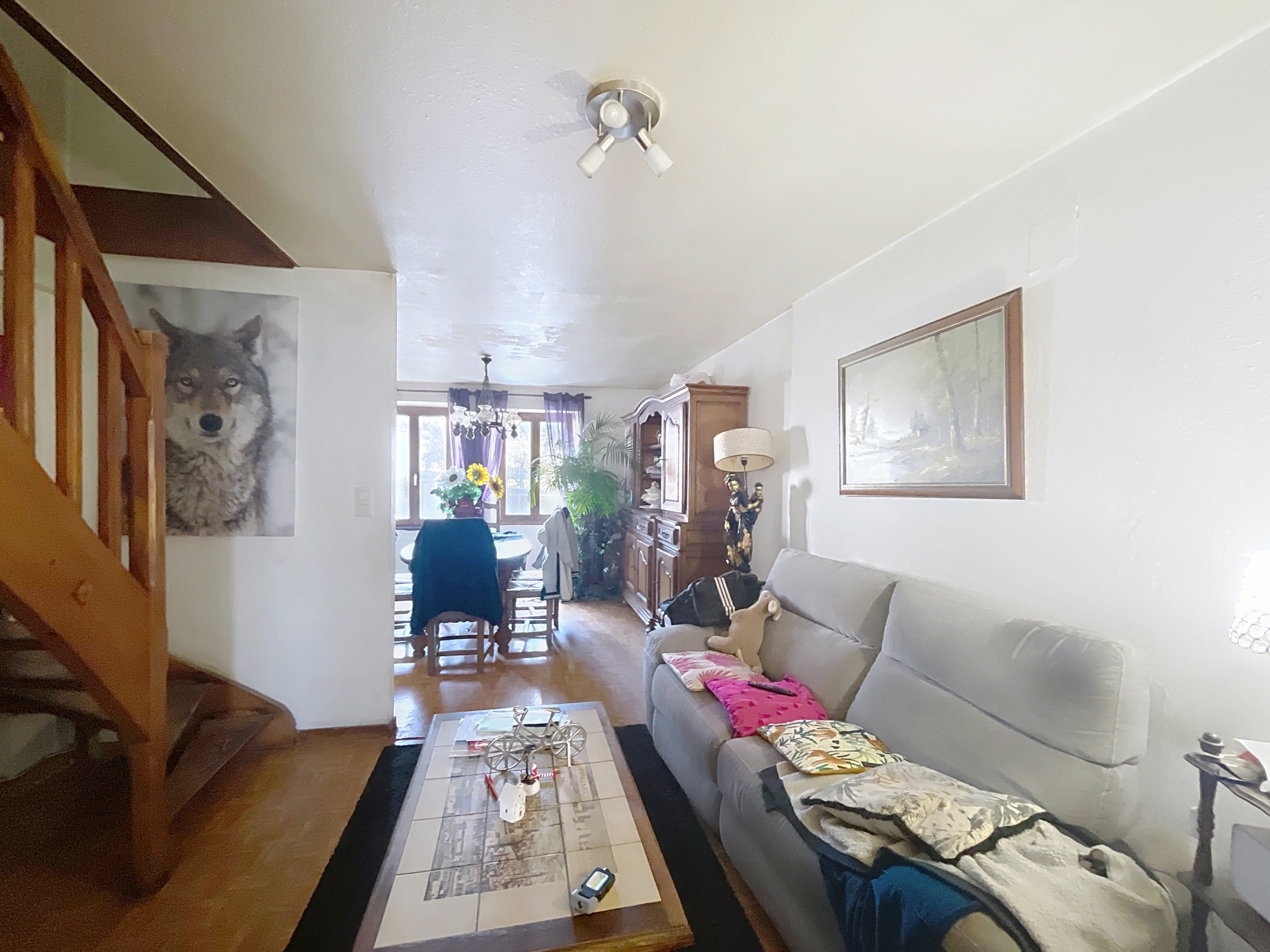 1 appartement T3 en duplex : cuisine, séjour, 2 chambres, salle de bain, WC, cave et place de parking