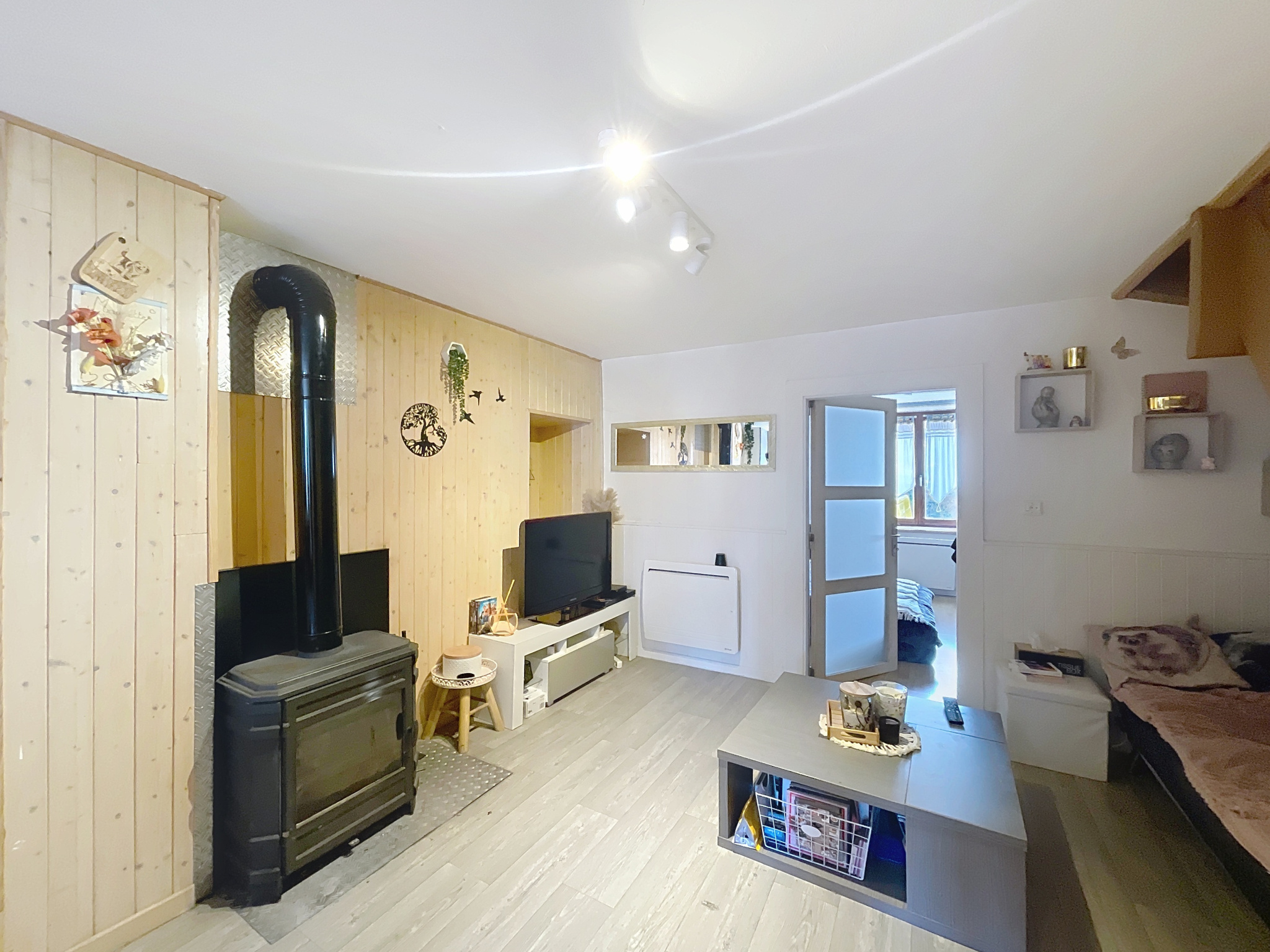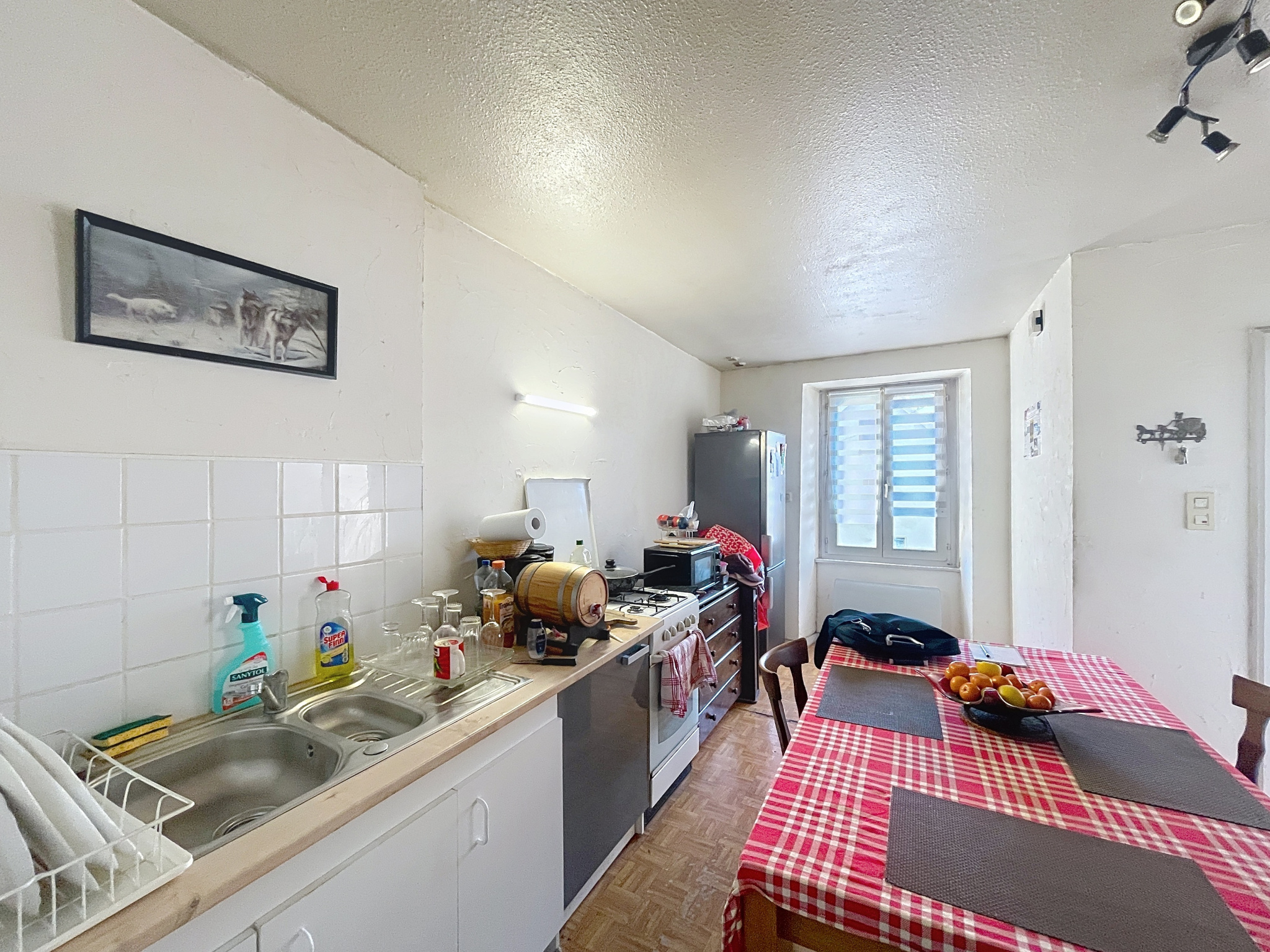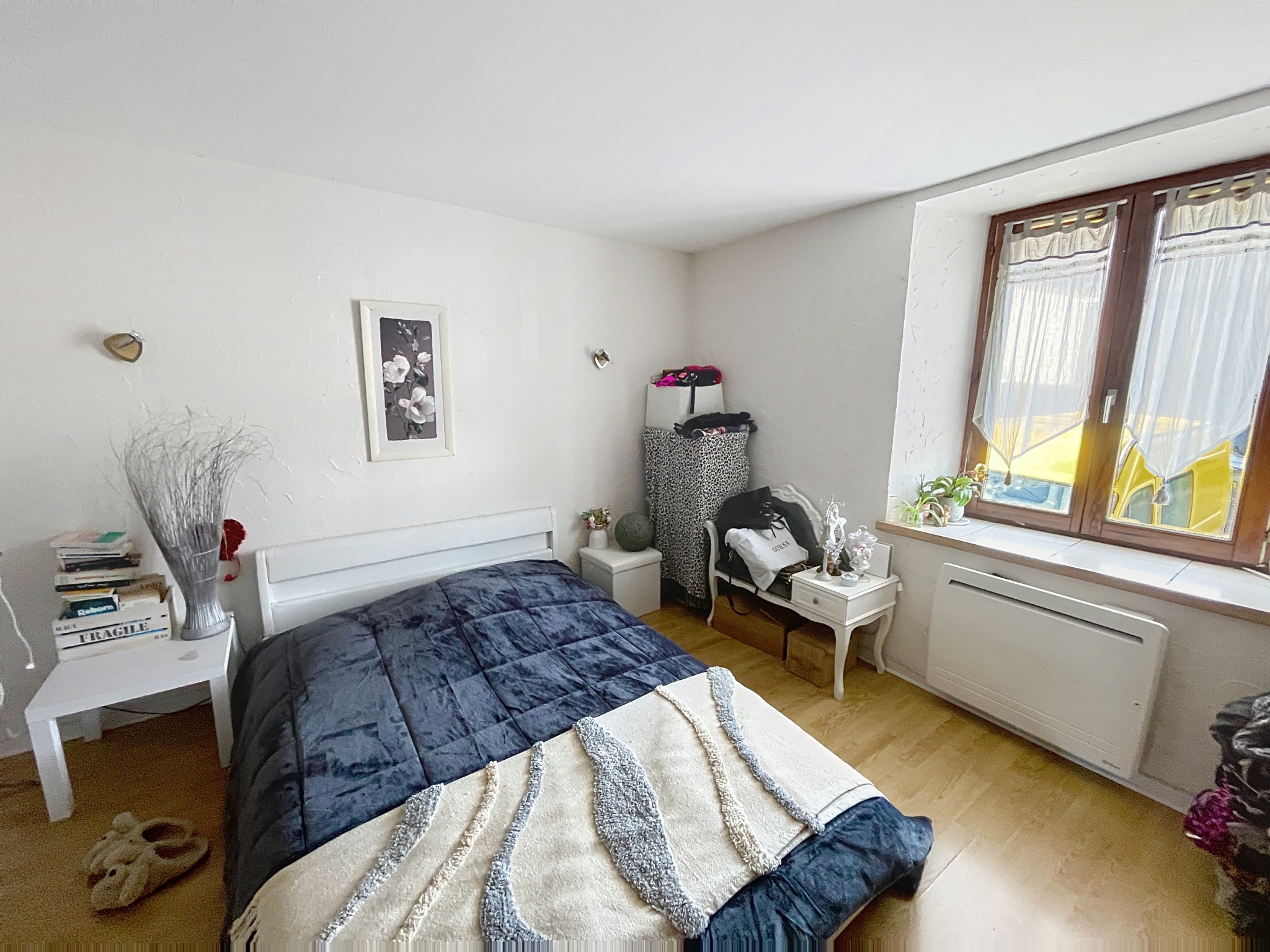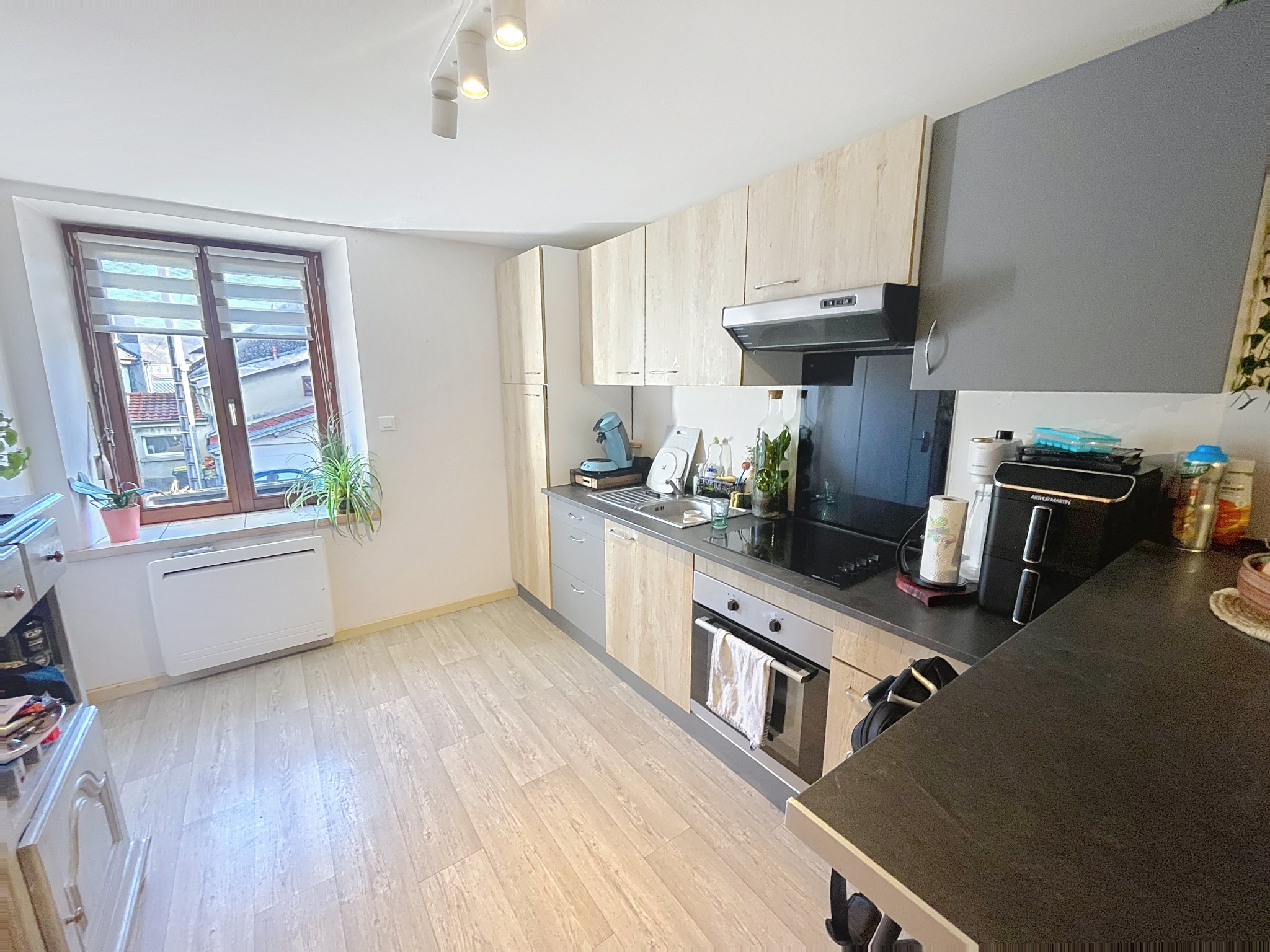 1 appartement T3 en duplex : cuisine, séjour, 2 chambres, salle de bain, WC, cave et place de parking