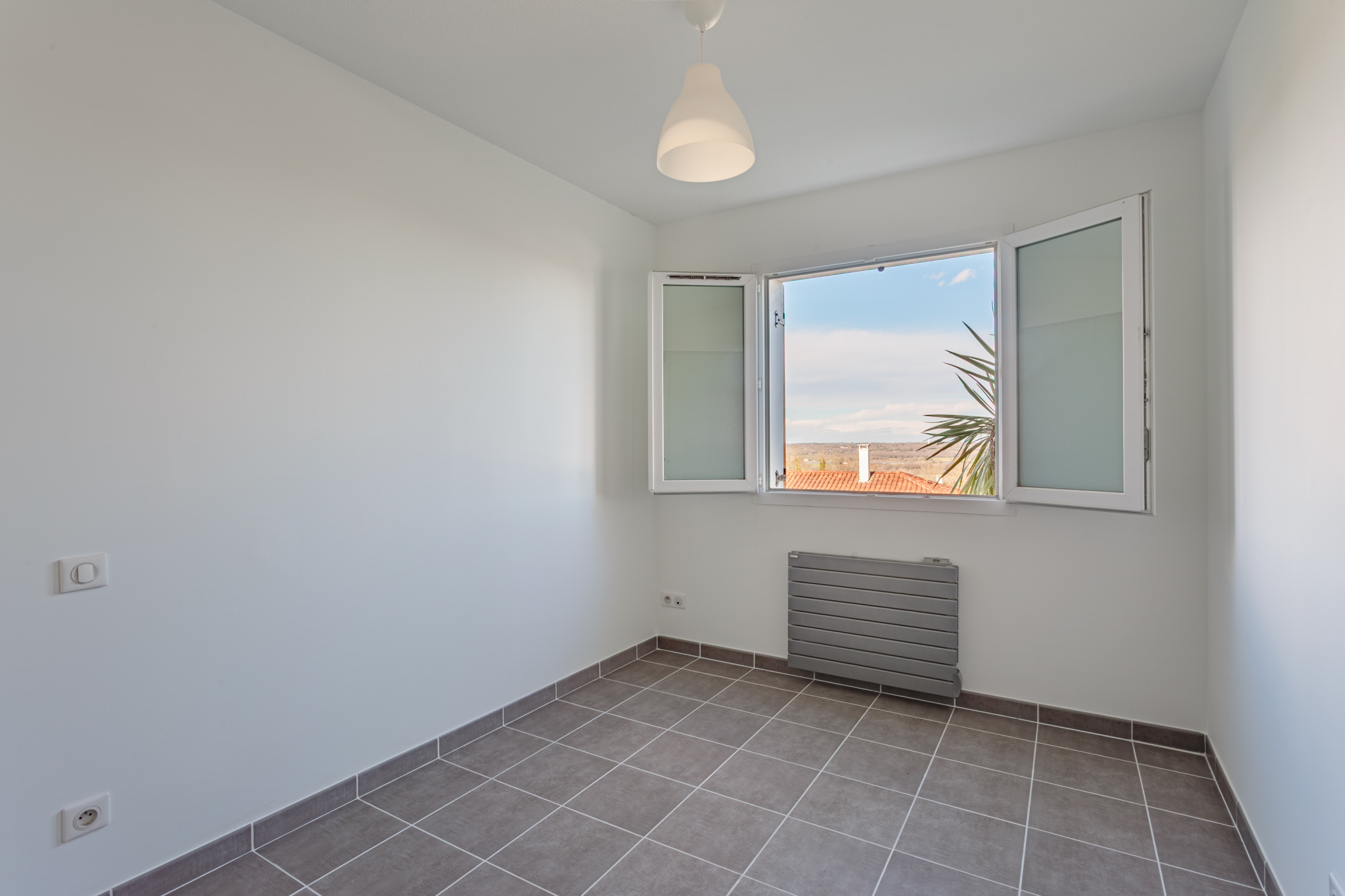 Ce lumineux appartement de 3 pièces se compose d'une belle entrée donnant sur une pièce de vie avec une cuisine entièrement équipée, de 2 chambres, dont l'une dispose d'un espace bureau intégré, d'une salle de bains regroupant douche, baignoire et WC, ainsi que d'un cellier/buanderie.