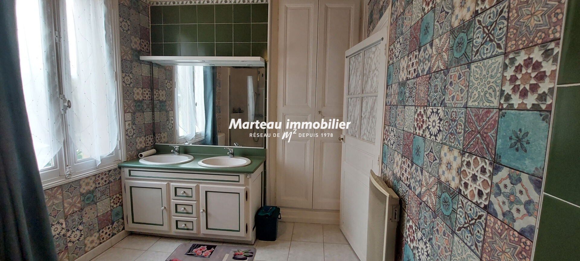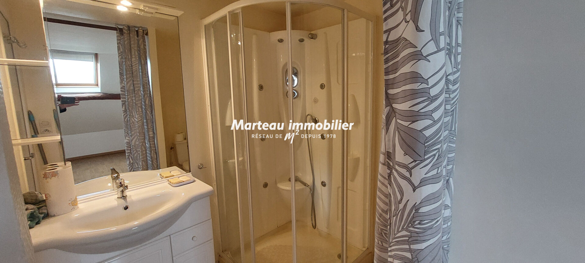 Un second escalier mène à un palier desservant 2 chambres dont 1 avec de nombreux placards et salle d'eau avec WC.