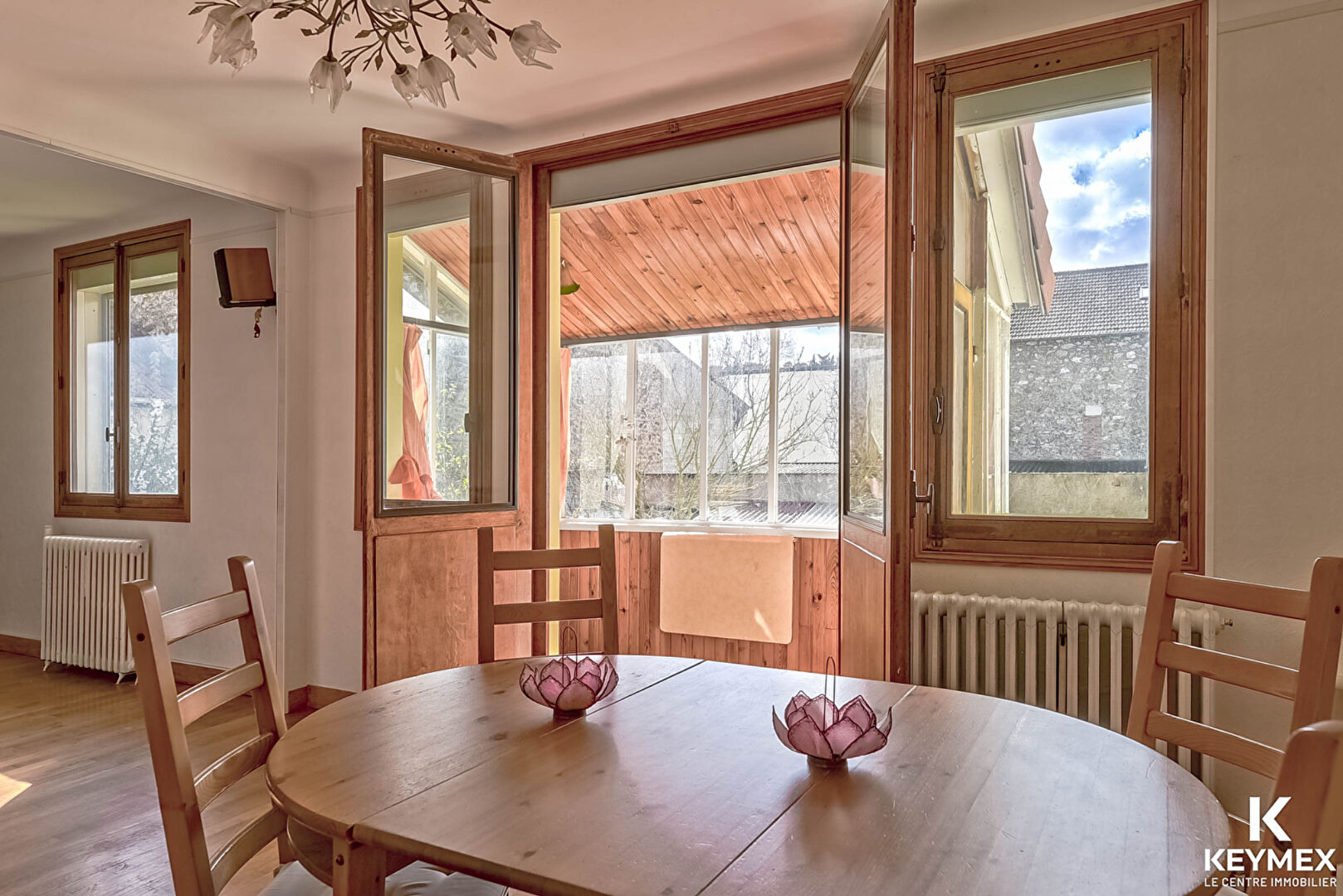 Située au fond d'une allée privée, cette maison orientée plein sud, sur un terrain arboré sans vis-a-vis, de près de 360m2, vous offre les prestations suivantes :