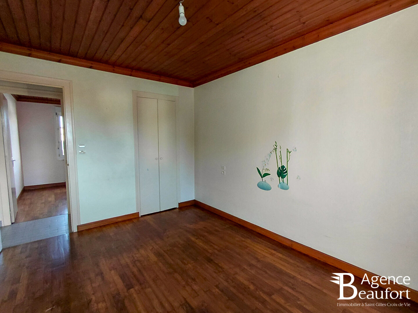 À seulement 500 mètres de Saint-Gilles-Croix-de-Vie et de toutes les commodités, maison des années 70 à rénover, comprenant en RDC : Entrée, bureau, WC, cuisine d'été et garage.