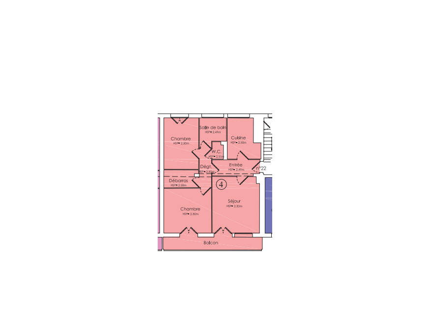 Au 3 allée des Mineurs à Trélazé, proche commerces et bus, appartement (lot 4) au 2ème étage, comprenant : entrée, séjour avec balcon, 2 chambres dont 1 avec balcon, wc, salle de bains, cuisine séparée - Chauffage collectif - production eau chaude individuelle gaz - Cave (lot 29)