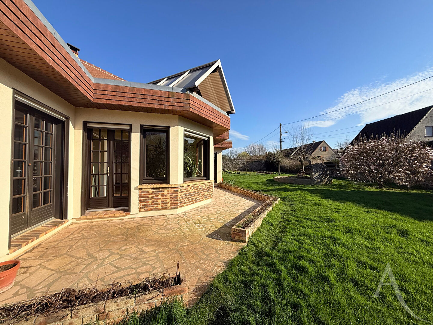 Dans un environnement calme, sans vis-à-vis, cette maison de 218 m² offre de très beaux volumes et un vrai potentiel. Elle est implantée sur un terrain de 1 500 m², agréable et arboré.