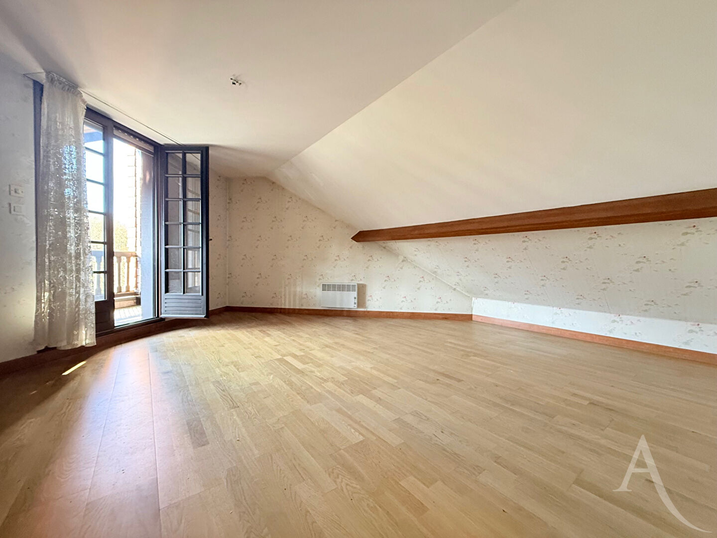 À l'étage, deux grandes chambres supplémentaires, dont une avec balcon, ainsi qu'une salle de douche avec WC. De nombreux rangements viennent compléter l'ensemble.