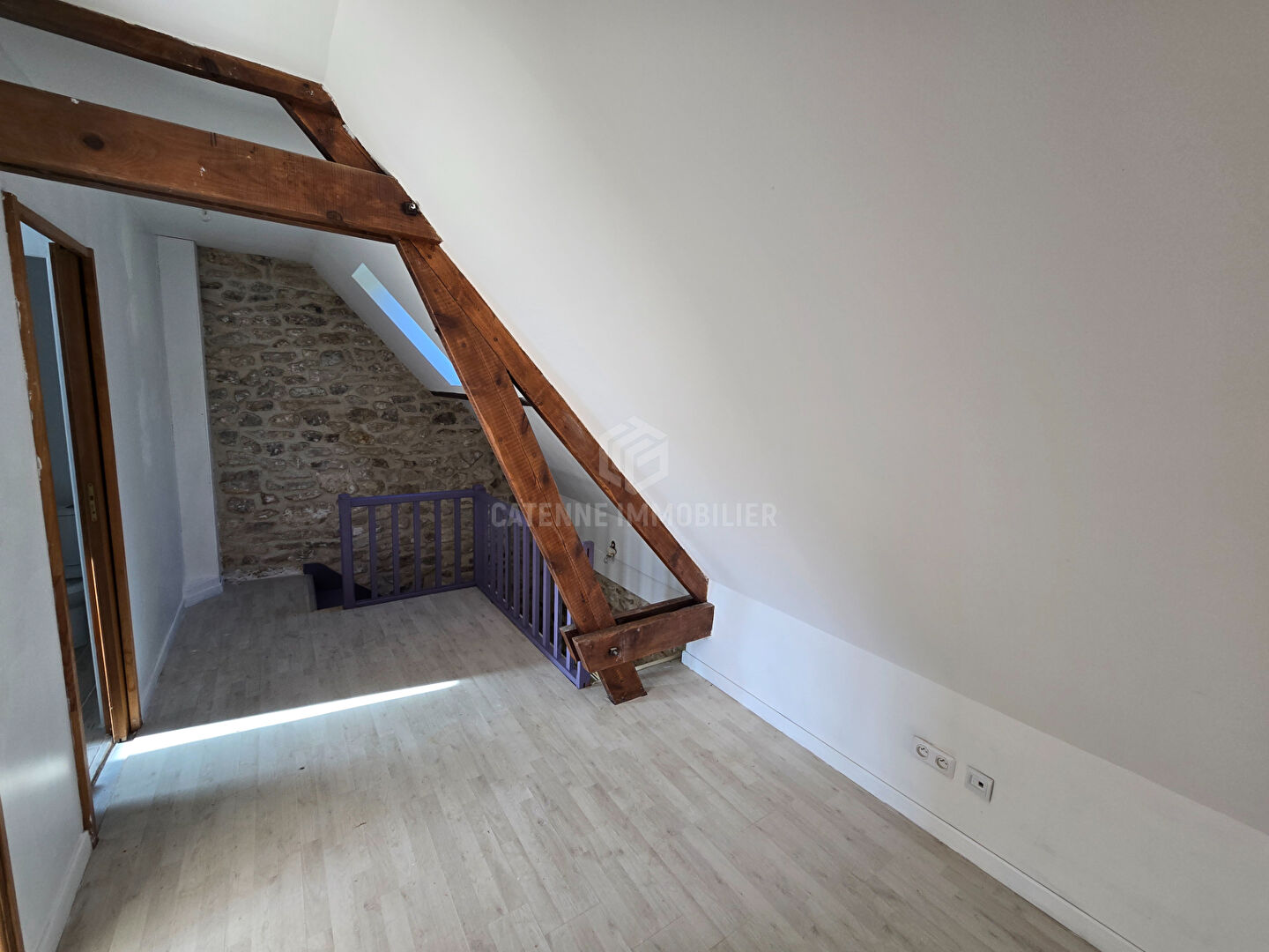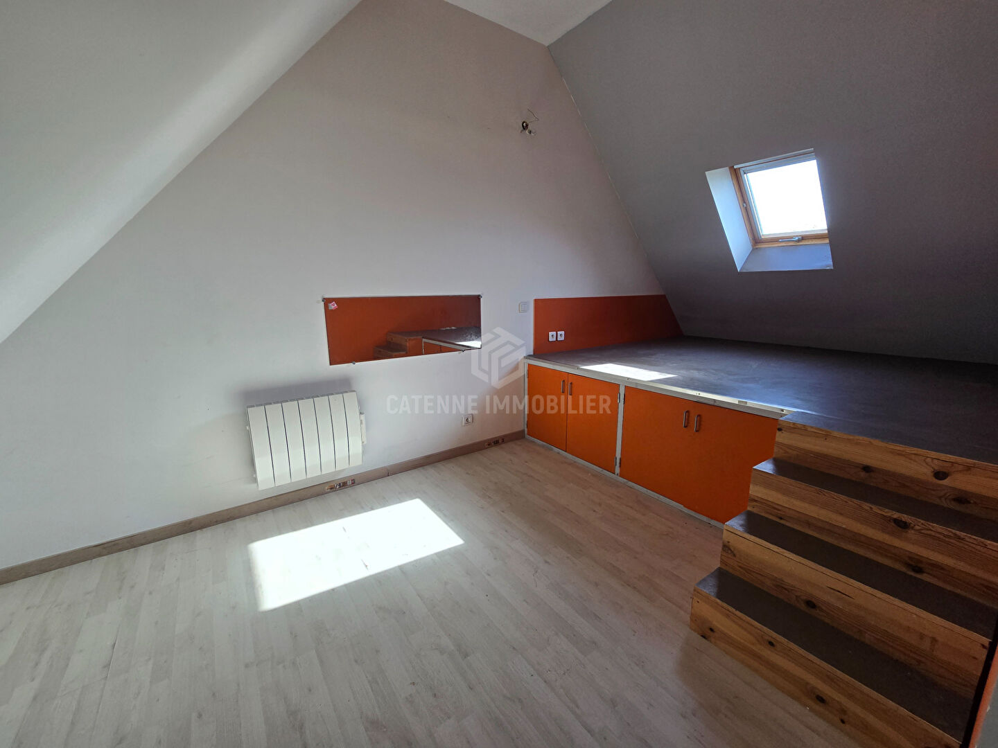 A l'étage : une entrée avec placard, un salon/salle à manger avec cheminée insert ouvert sur une cuisine aménagée et équipée, une petite pièce pour machine à laver, un wc, une chambre parquetée.