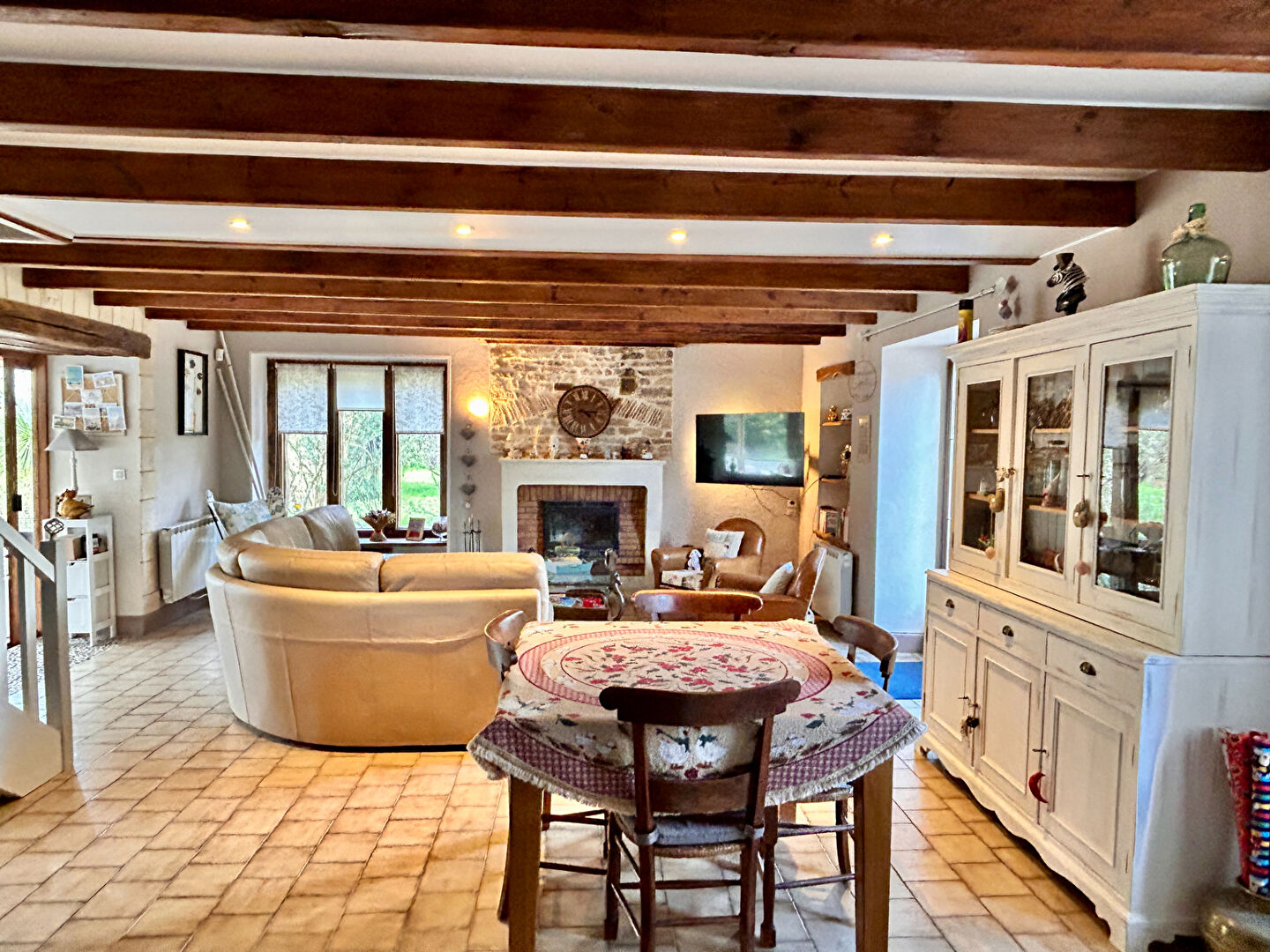 Un gîte avec son entrée indépendante d'une surface de 65m2 avec sa pièce de vie et son coin cuisine, une suite parentale avec accès piscine. A l'étage une mezzanine et une chambre. Un hangar ouvert et son atelier. Une cuisine d'été et un four à pain. terrain clôturé et arboré de 4151 m2.