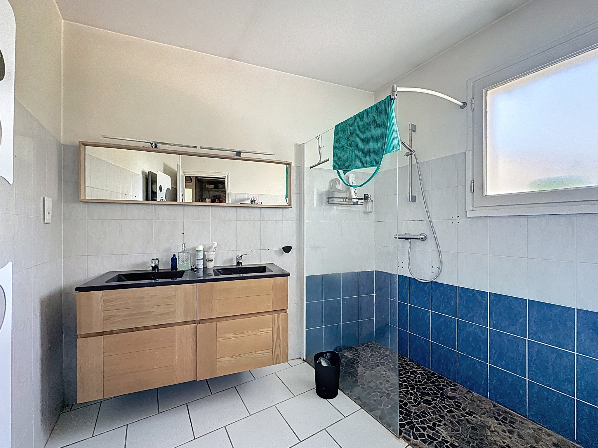 À l'étage, l'espace nuit propose deux chambres et une seconde salle d'eau avec toilettes, un agencement idéal pour une vie de famille confortable ou pour recevoir.