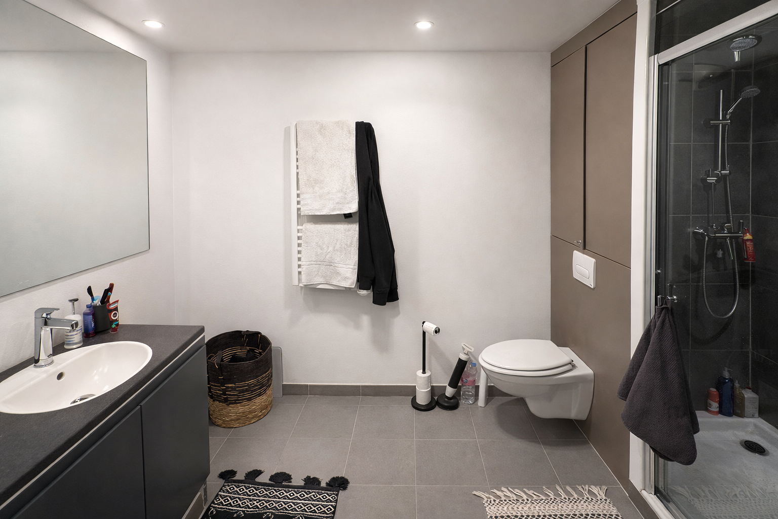 Une grande chambre confortable complète ce logement, ainsi qu'une salle d'eau moderne avec toilettes. L'ensemble de l'appartement est très bien agencé, ce qui le rend particulièrement agréable à vivre au quotidien.