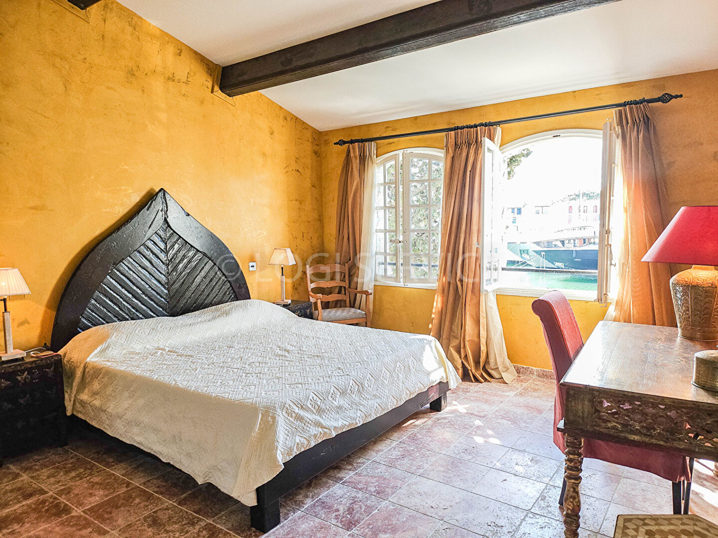 À l'étage, une "masterbedroom": grande chambre de maître avec sa salle de douche et bain-wc, une chambre d'amis avec salle d'eau et dressing, une chambre et une salle de douches-wc , une chambre. climatisation . parking.