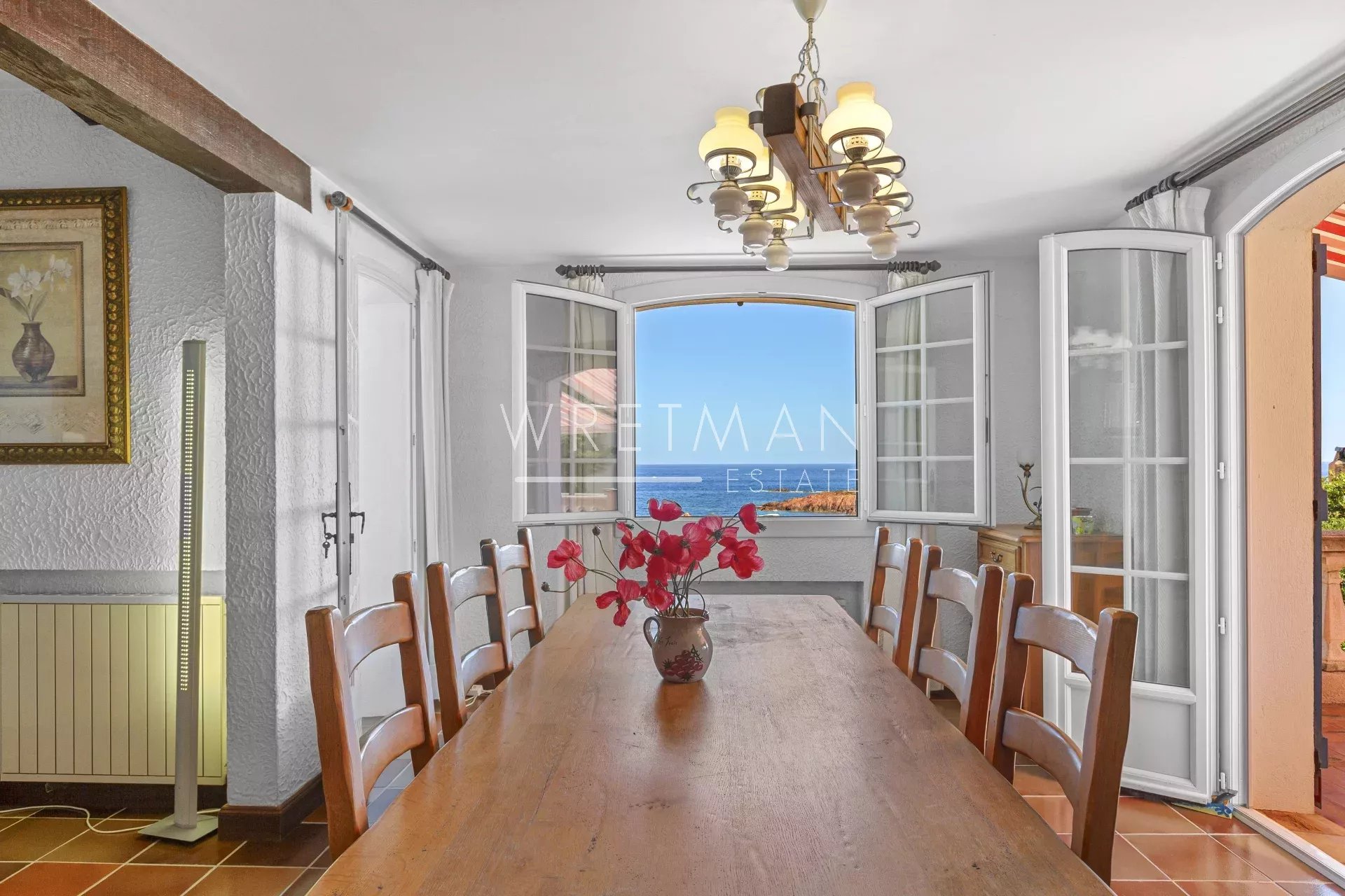 Située à quelques pas du front de mer et de la plage, cette villa de 212 m² sur un terrain de 904 m² offre une vue panoramique à 180° sur la mer et le massif de l’Esterel, sans aucun vis-à-vis. Un lieu unique, lumineux et serein, alliant confort, potentiel d’aménagement et style de vie authentique de la Côte d’Azur.