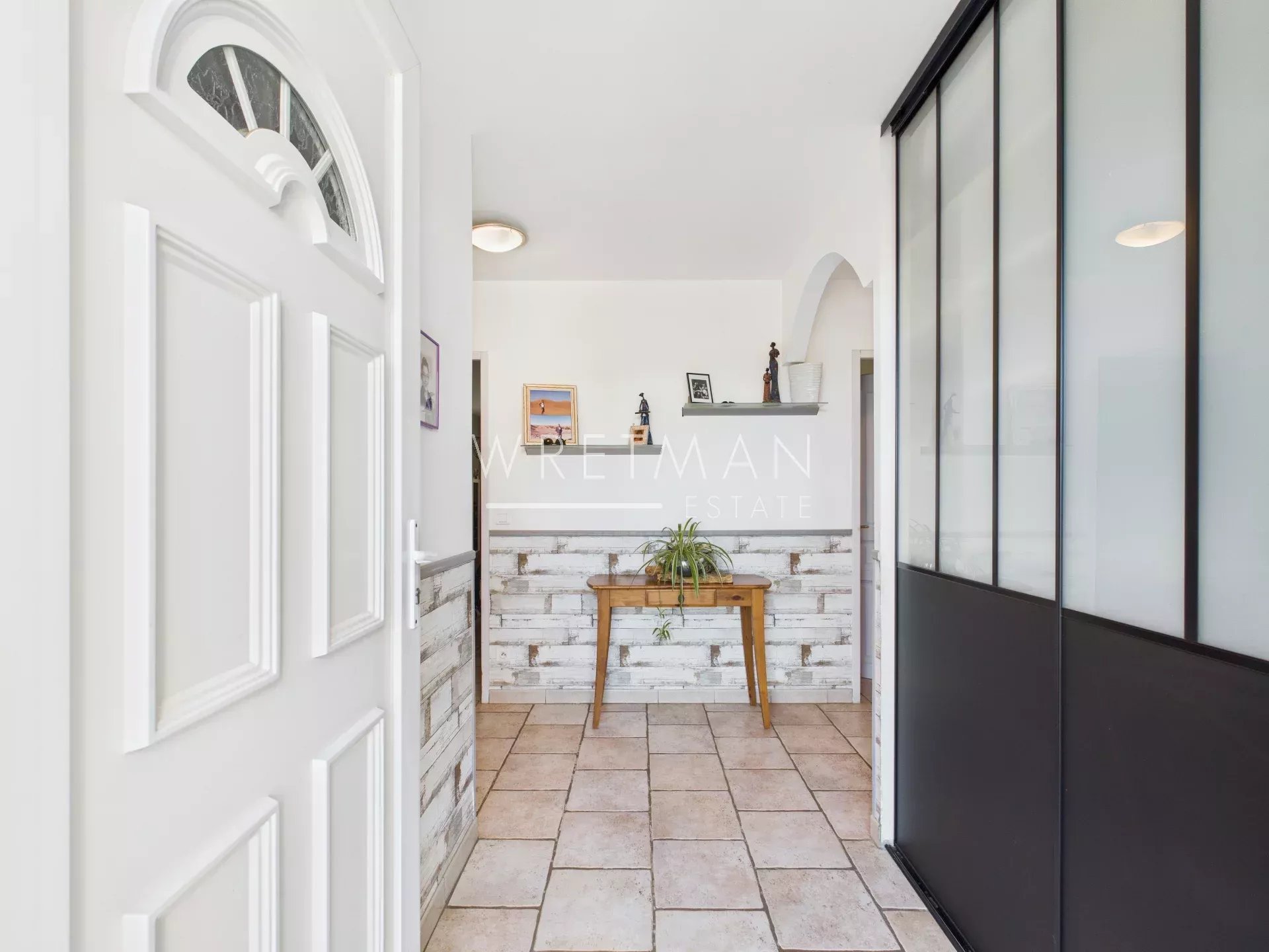 La maison compte quatre chambres, dont deux suites avec salle d’eau, ainsi qu’une salle de bain.