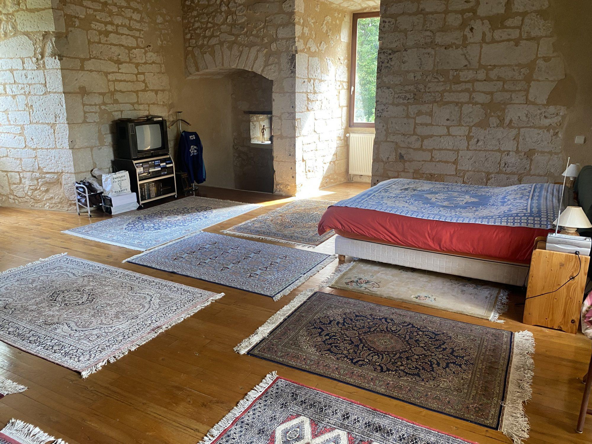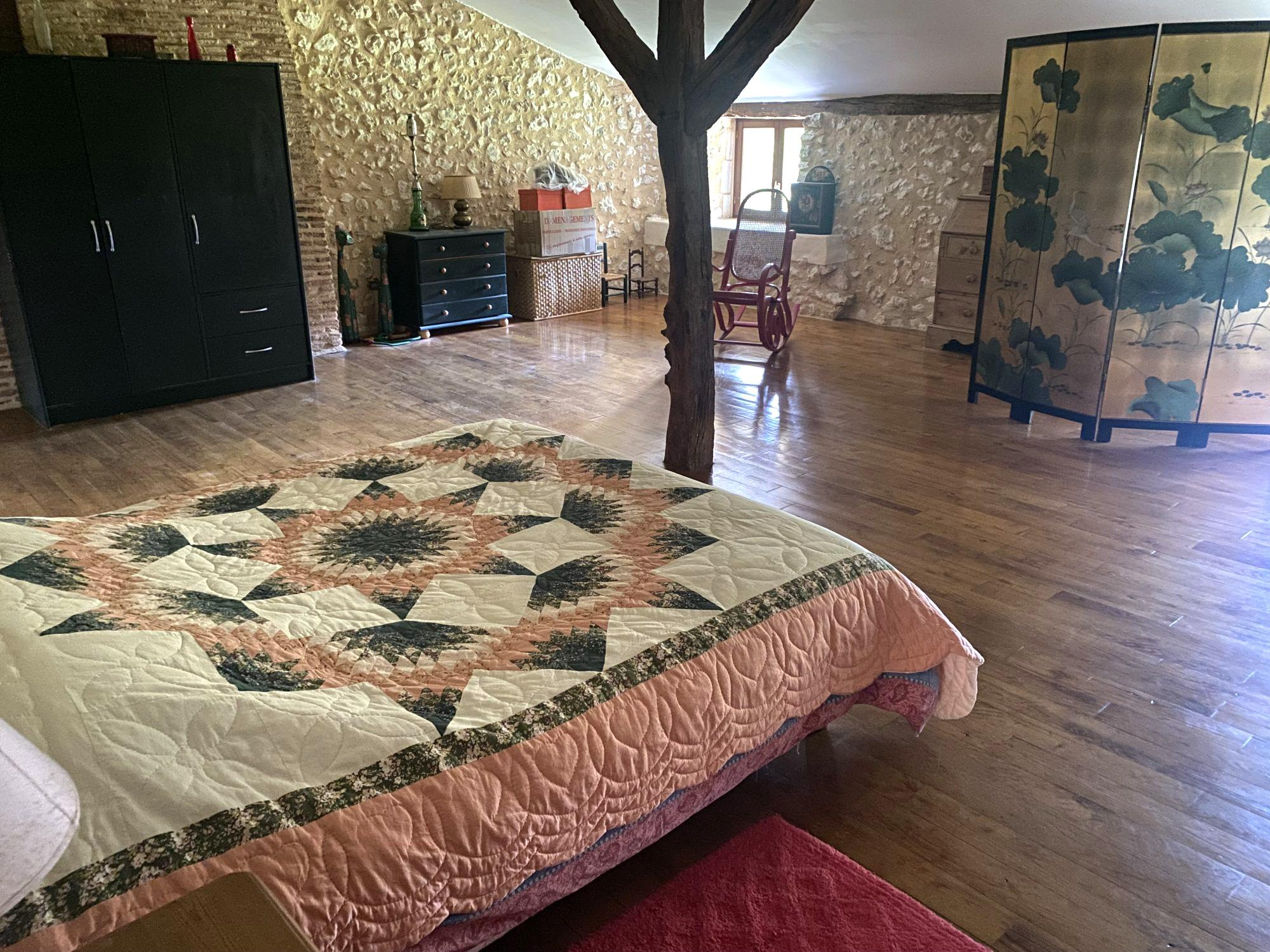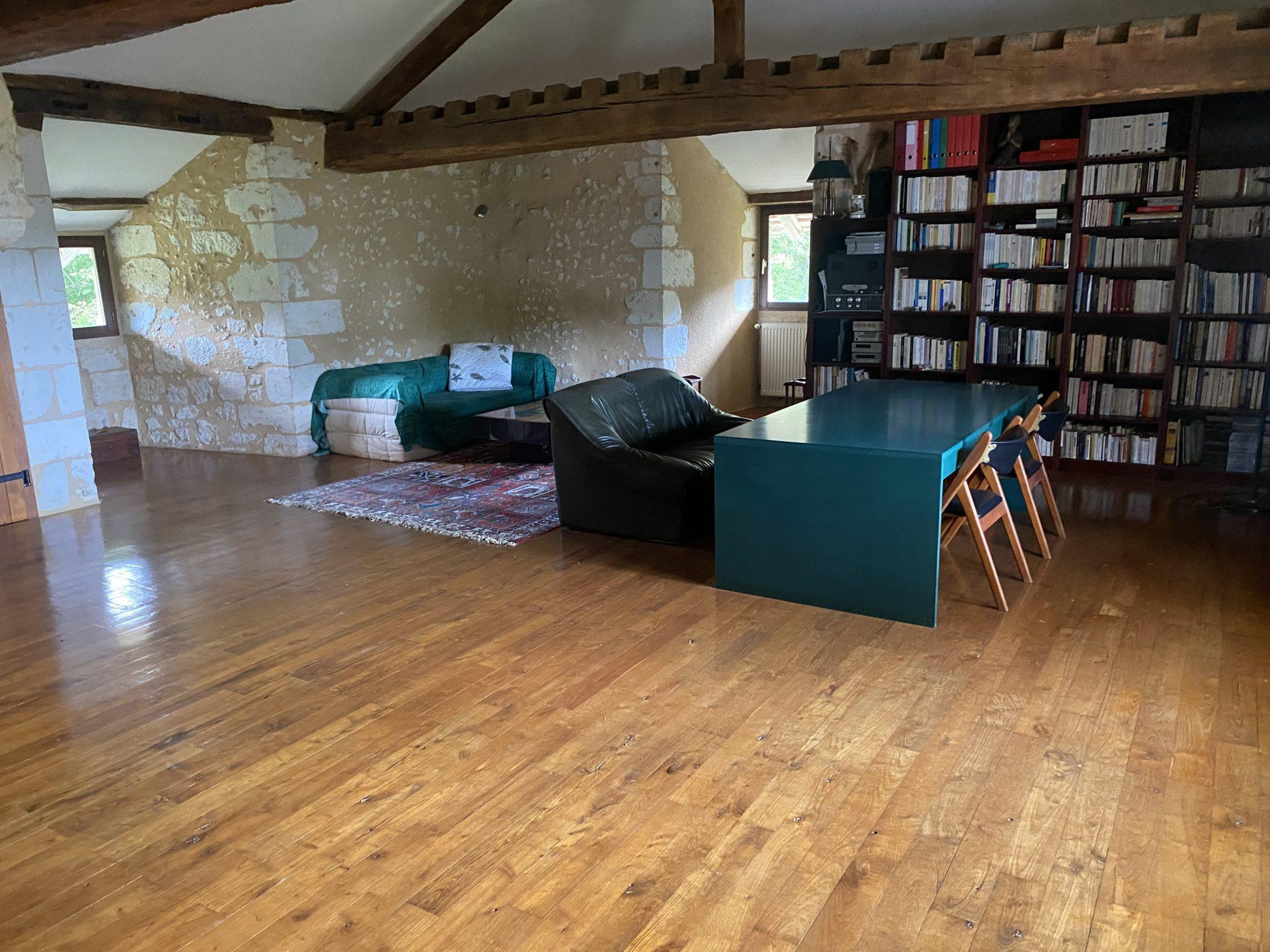 Magnifique ferme fortifiée avec ses fondations du XVème siècle, sise à proximité de la commune de St Astier 24110 Dordogne (10 Minutes de l'Autoroute A89 Bordeaux Genève). Dominant 6 hectares de prairie avec Sources ruisseau et puit. Bénéficiant d'une restauration de grande qualité ayant sauvegardée les volumes tout en diffusant une lumière omniprésente. Avec au rdc cuisine salon 60m2, bibliothèque 100 m2, un studio de 40 m2 indépendant avec chambre, 2 salles d'eau, 2 WC et dressing. A l'ètage (1) 2 Chambres de 40 m2 avec salle d'eau Wc A l'étage(2) 1 chambre de 45m2. WC Grange et atelier en dépendances, cave ,chauffage central Fuel. Coup de coeur absolu .