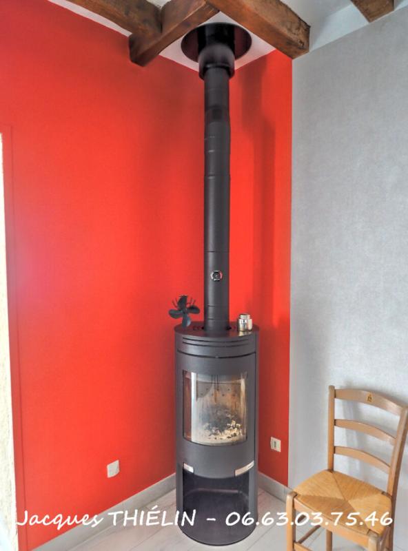 Un poêle à bois vient compléter l'ambiance chaleureuse de la maison tout en offrant un mode de chauffage économique et confortable, associé à un chauffage électrique.