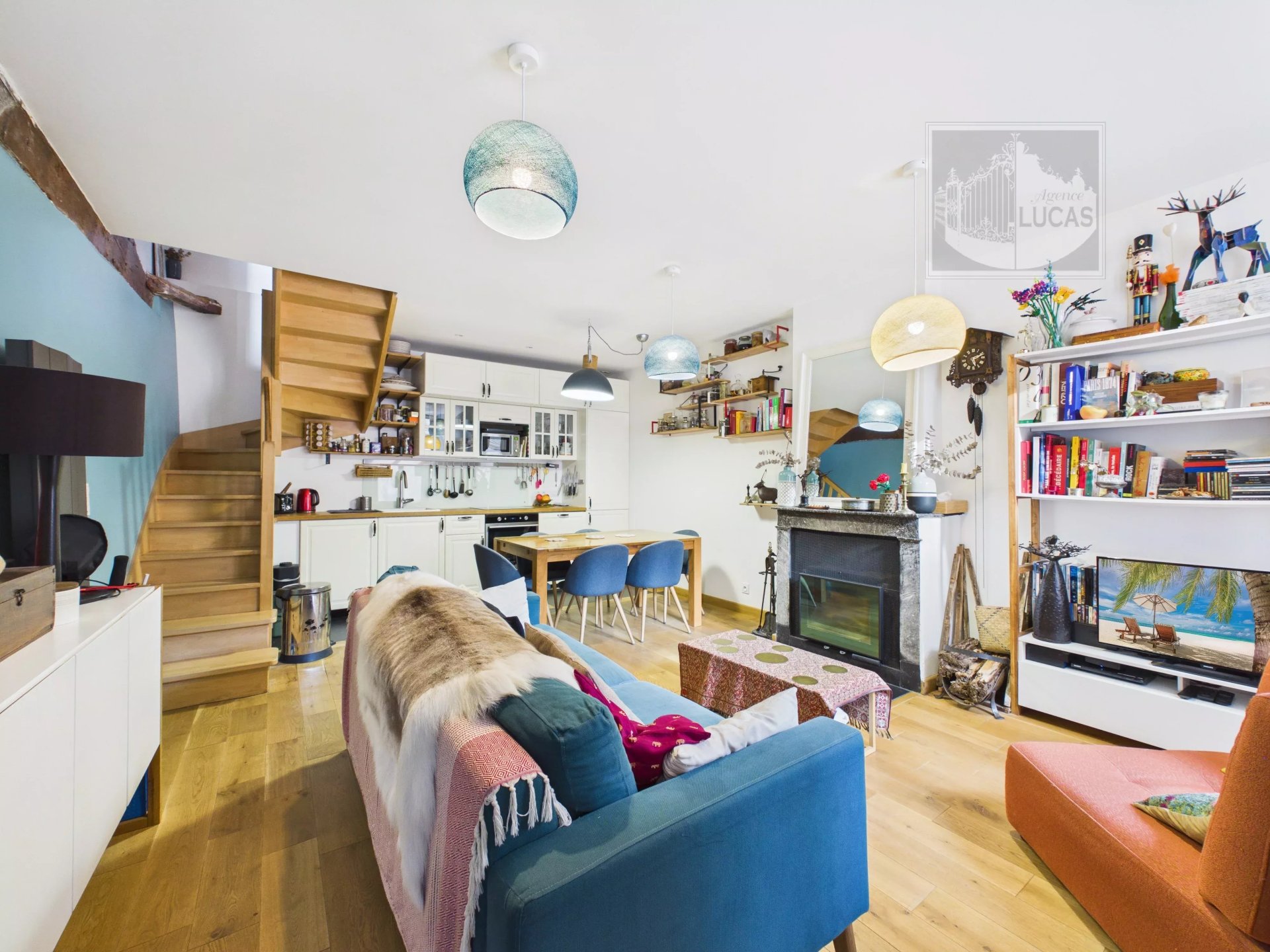 La maison propose au rez-de-chaussée, une belle pièce de vie avec cuisine de 28 m² avec une cheminée à insert.